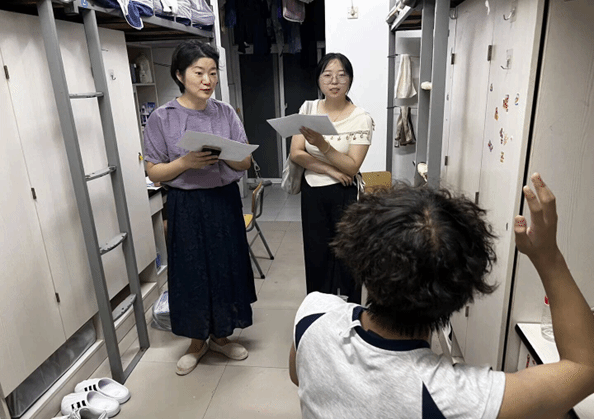 1319:00,学院领导班子率领辅导员、新生班主任分六组深入新生寝室。“晚上睡着冷不冷?”“食堂吃得惯吗?”“家里是哪里的?”一句句拉家常,把“查隐患+解困惑+鼓干劲”融进10分钟“微走访”,现场解决学业、生活疑问60余条。学院党委书记副书记表示:“学生工作没有‘8小时之外’,我们把办公室搬到寝室,就是把关怀做到心坎。”