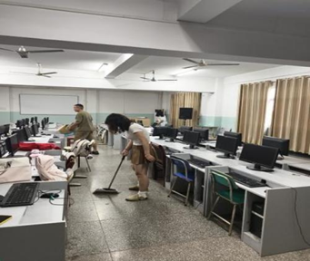 经过同学们共同努力,机房环境焕然一新。大家重点对地面灰尘、墙角污渍、桌椅摆放等进行了彻底处理,为广大师生创造了一个更为舒心的学习与工作环境。