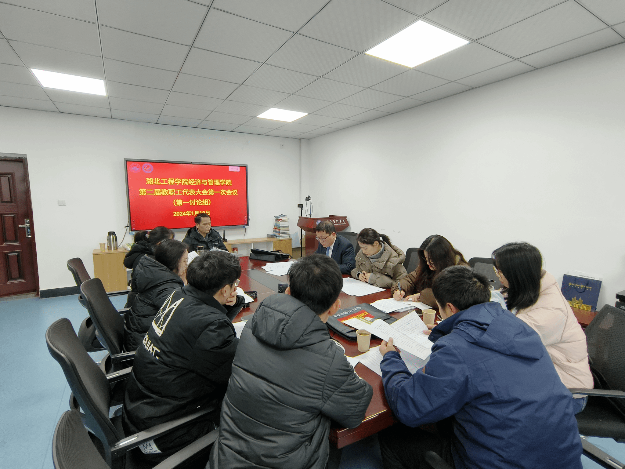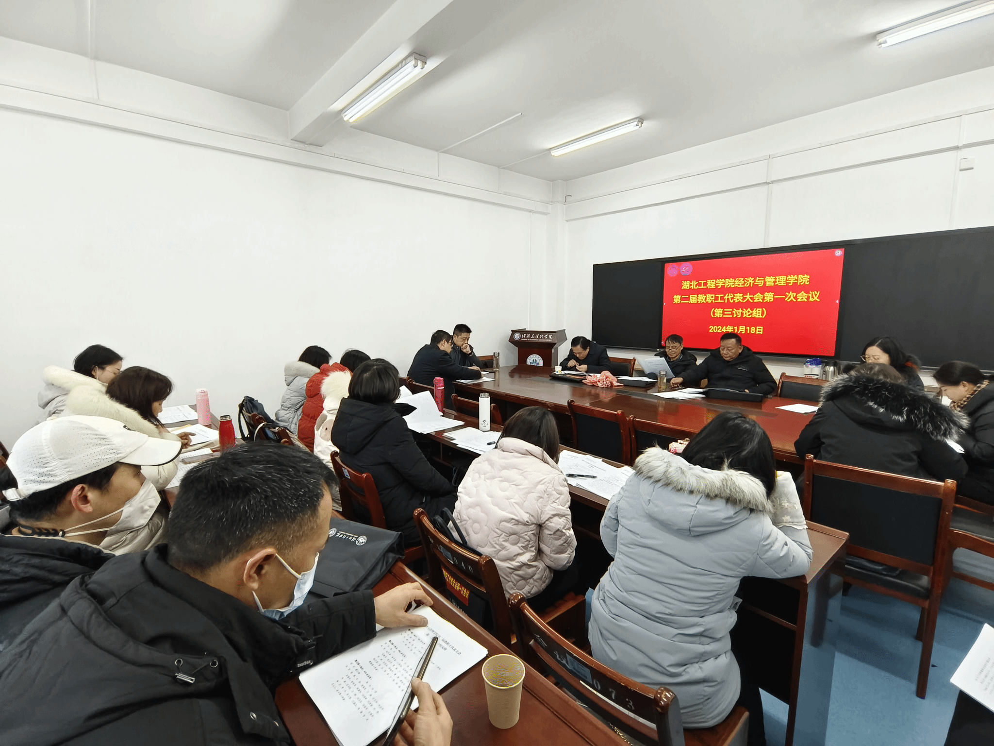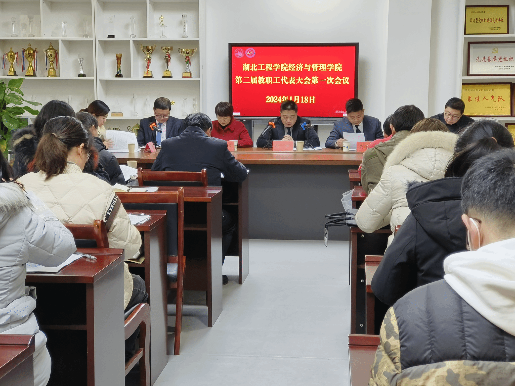 2024年1月18日下午,williamhill英国第二届教职工代表大会第一次全体会议在经法楼506会议室举行。学校党委副书记、副校长丁远坤和校工会常务副主席李道友出席。学院58名正式代表和1名特邀代表参加大会。