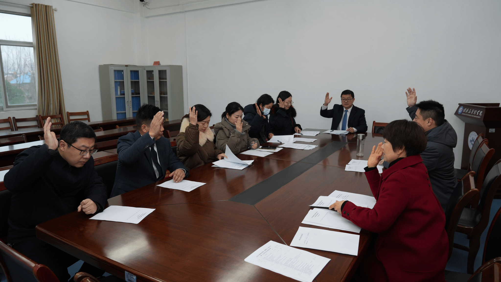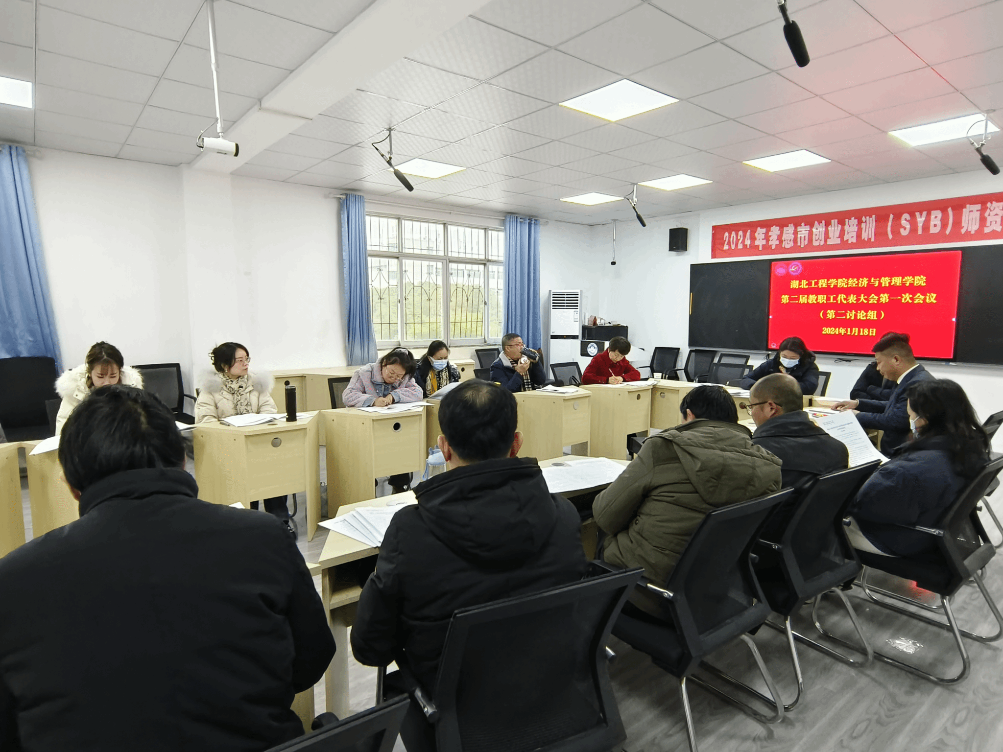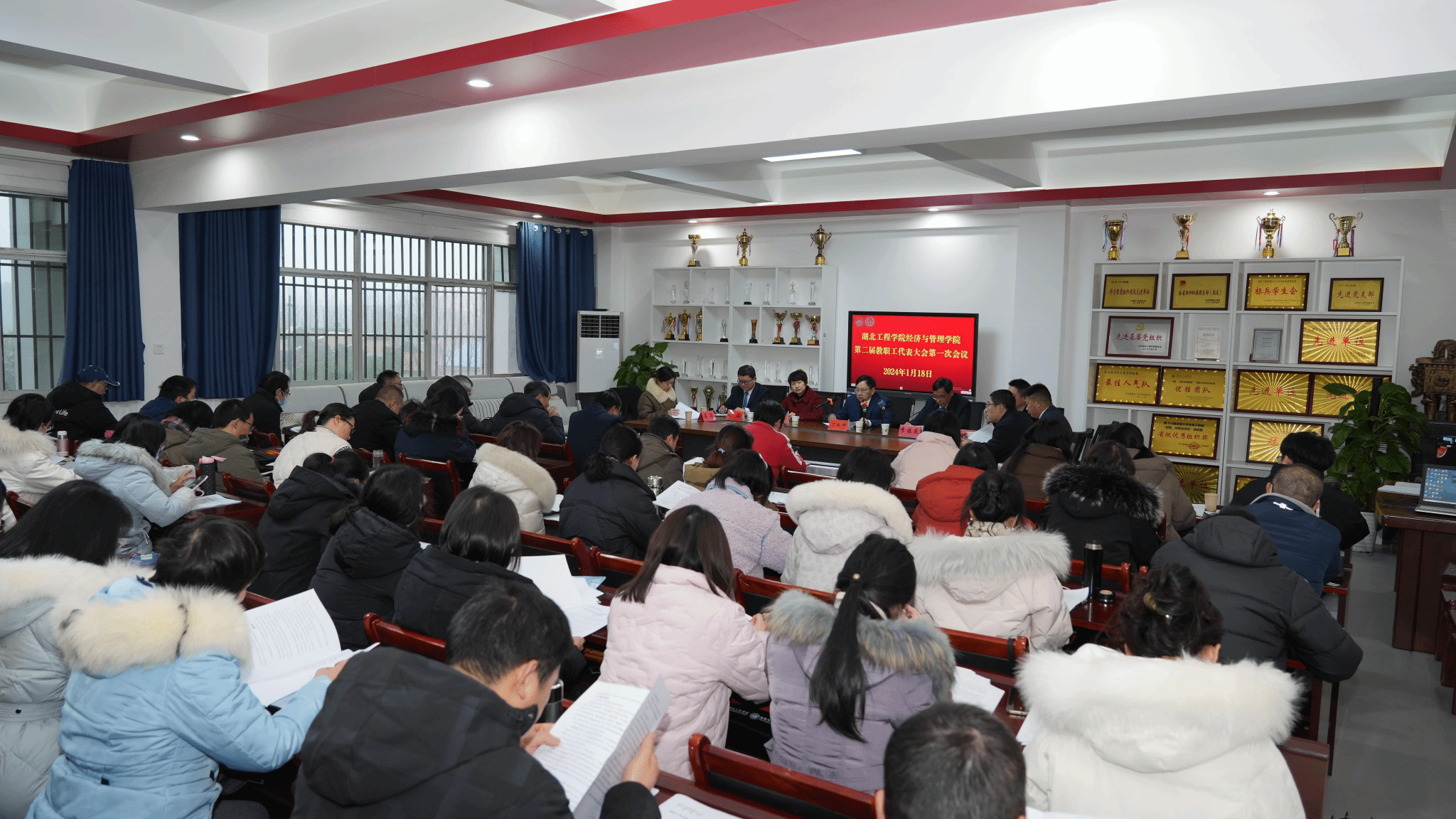 2024年1月18日下午,williamhill英国第二届教职工代表大会第一次全体会议在经法楼506会议室举行。学校党委副书记、副校长丁远坤和校工会常务副主席李道友出席。学院58名正式代表和1名特邀代表参加大会。
