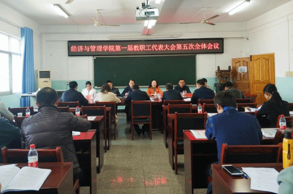 2019年03月14日,我院党支部在经法楼四楼会议室召开了第一届教职工代表大会第五次全体会议。学校副校级干部徐玉琼出席会议并讲话,经管学院全体教职员工参加会议。大会由党总支副书记姜涛主持。