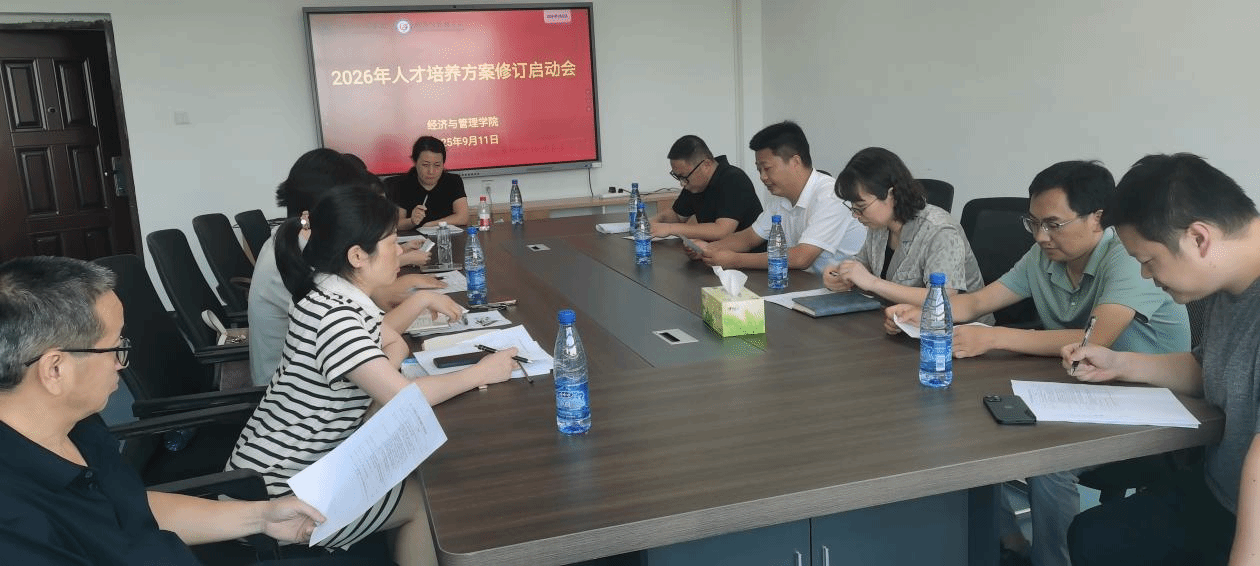 2025年9月11日下午,经济管理学院在经法楼401会议室召开2026版本科专业人才培养方案修订启动会。院长黄宏磊主持会议,副院长刘姣华、李哲,副书记肖萍、各系主任、专业负责人及部分骨干教师参会。