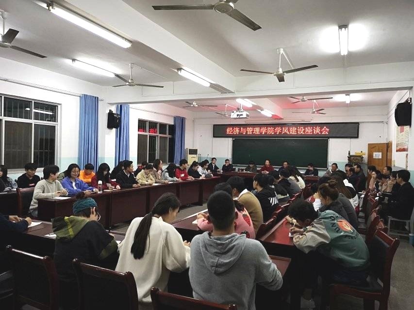 我院结合近期“不忘初心、牢记使命”主题教育检视问题环节中存在的有关学风问题,于10月28日晚上7点在经法楼403会议室召开了学风建设座谈会,目的是要有效改善学风环境、提高育人质量。出席本次会议的有院长胡金林教授、副院长龙玉祥教授、张辉副教授、党总支副书记姜涛老师、院督导李梅华副教授、班主任老师,院学生会分管干部及各班学生代表参加。会议由党总支副书记姜涛主持。
