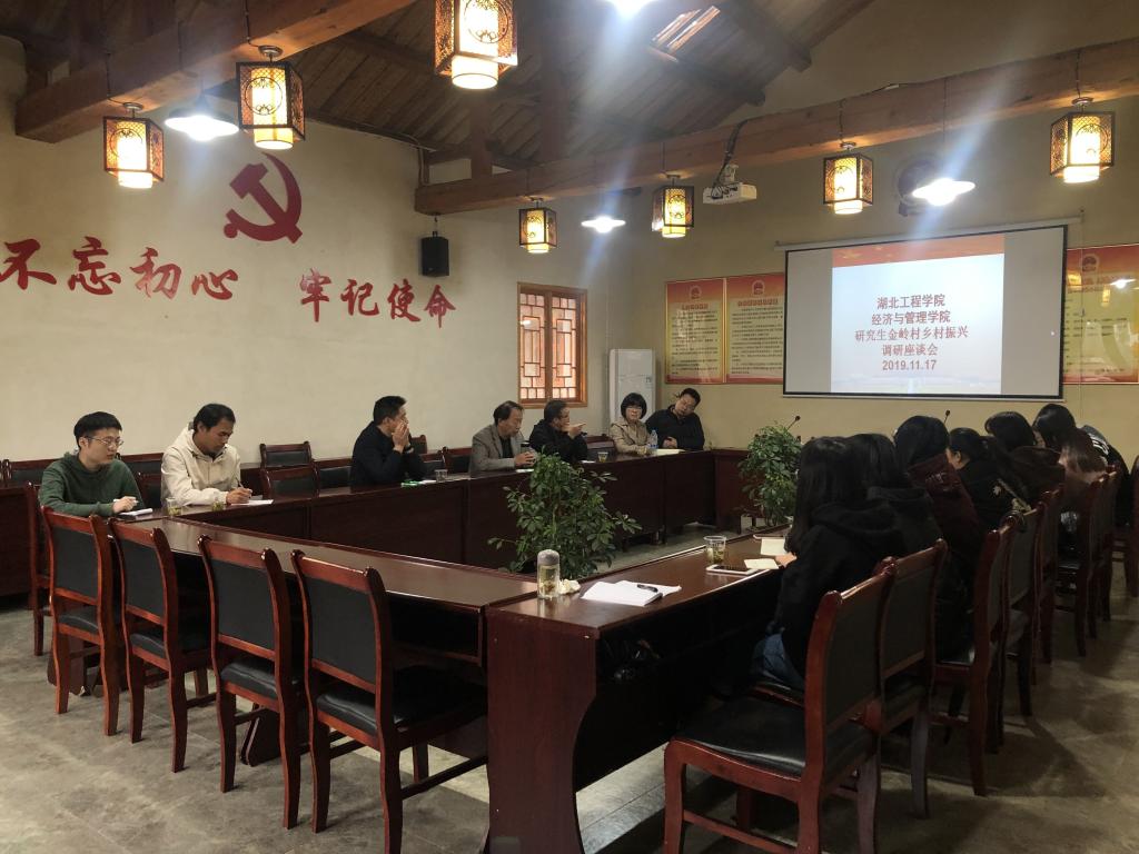 金岭村地处大悟县新城镇东北部,是开国大将徐海东故里。该村为精准扶贫工作重点村,利用古民居、山水风光、红色文化等资源,引导村民开发观光农业、住宿餐饮等形式的乡村旅游,打造美丽乡村,逐渐成为乡村振兴工作的示范村。金岭村在省委组织部及县乡两级党委政府的指导下,以建强农村基层党组织为基础,通过村民入股的形式,实现了集体资产的公司化运营,探索了村集体经济发展的模式,扶贫长效机制逐步显现。全体研究生通过听村干部讲座、走访村民、查看村级资料等形式,全面了解该村的发展状况,将书本理论与鲜活的产业发展典型、农户脱贫案例相结合,对“三农”问题有了更深的理解。