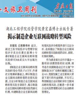 2020年4月20日,孝感日报报道我院黄宏磊博士出版专著《制造企业互联网战略转型风险研究》。本书由武汉大学出版社出版,书为湖北省社会科学基金一般项目(后期资助项目)成果,项目批准号为2016009。本书紧扣我国制造业正在实施的“中国制造2025”战略、德国实施的工业4.0和美国发展工业互联网的大背景,对企业互联网战略转型进行的有益思考和探索,不仅可以帮助制造企业识别和评价互联网战略转型风险,还能进一步丰富企业风险管理理论和企业战略转型理论,有较高学术与实践价值。