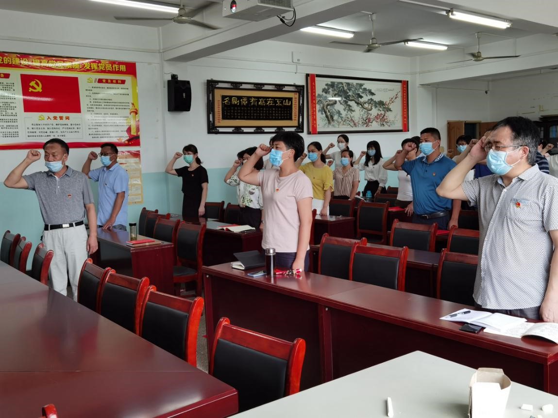 首先,由我院胡金林书记带领全体党员面对庄严的党旗宣誓,通过回顾入党宣誓时的庄严承诺和坚定决心,回顾入党以来的成长历程,更加坚定了将个人选择融入国家命运的理想信念。