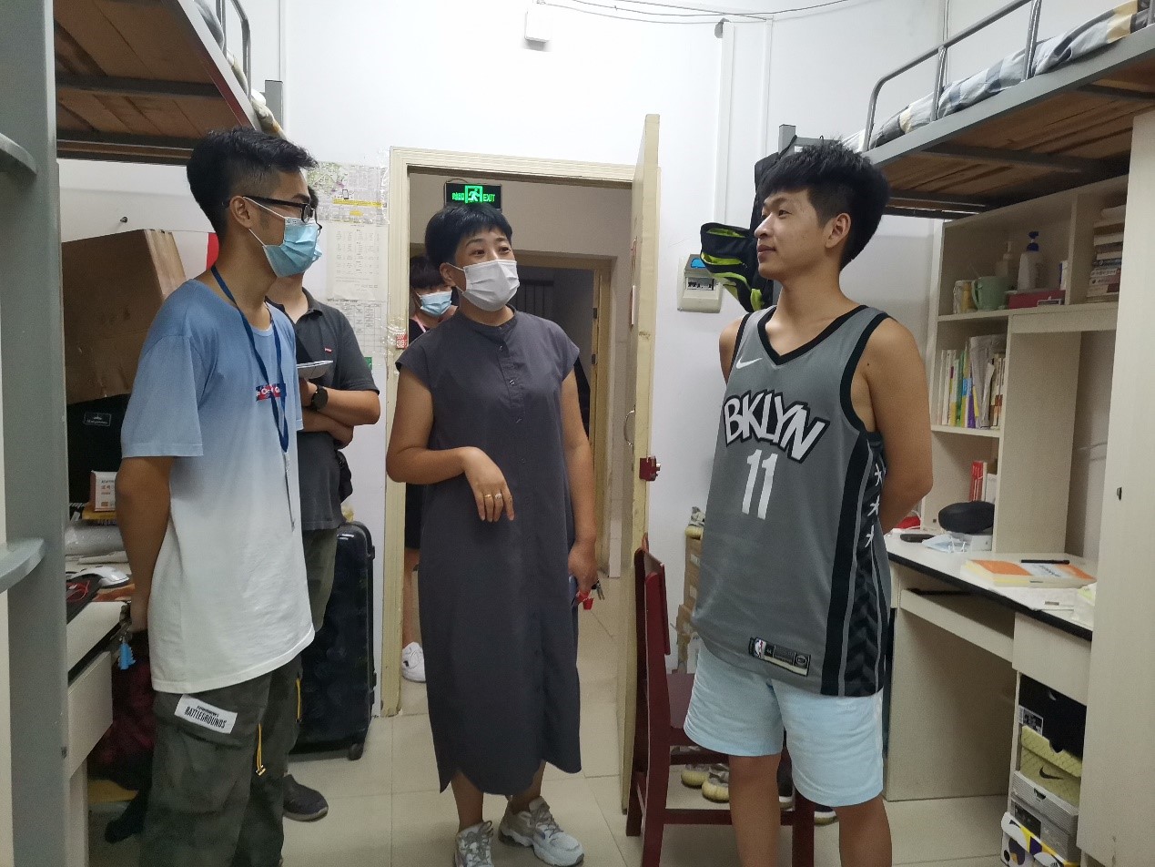 在寝室走访过程中,老师们亲切地与学生进行了交谈,了解学生的假期生活,对学生到校生活适应情况进行了询问,表示如果遇到问题可以及时寻求老师们的帮助。学生对目前的封闭管理表示理解,对宿舍管理人员提前帮忙打扫寝室、晾晒被褥心存感激。