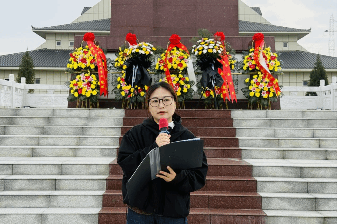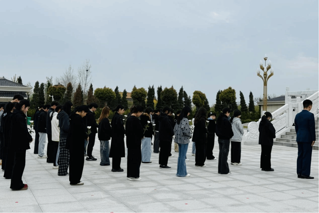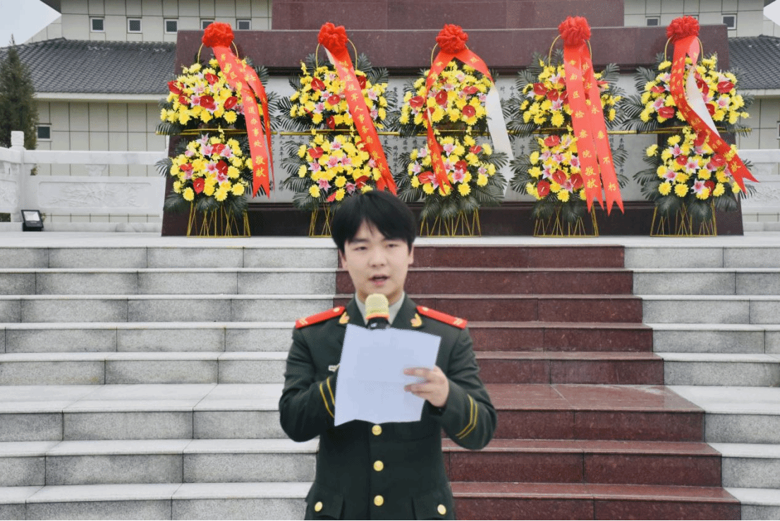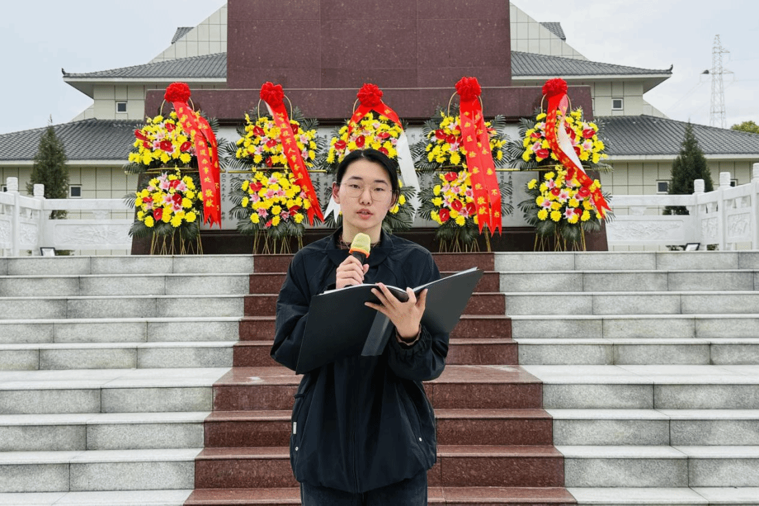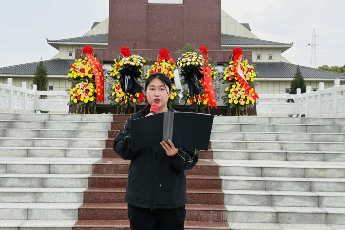 随后,学生党员代表马燕宣读缅怀倡议书。倡议书饱含对英烈的崇高敬意,号召全体师生铭记英烈事迹,传承英雄风骨,以“传承是最好的缅怀,奋斗是最深的告慰”为指引,文明祭扫、砥砺奋斗,将个人理想融入民族复兴伟业,为强国建设贡献青春力量。宣读完毕,全场师生肃立默哀一分钟,向革命先烈致以崇高敬意,寄托深切哀思。