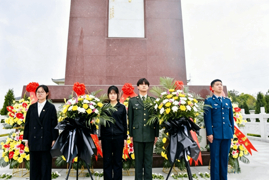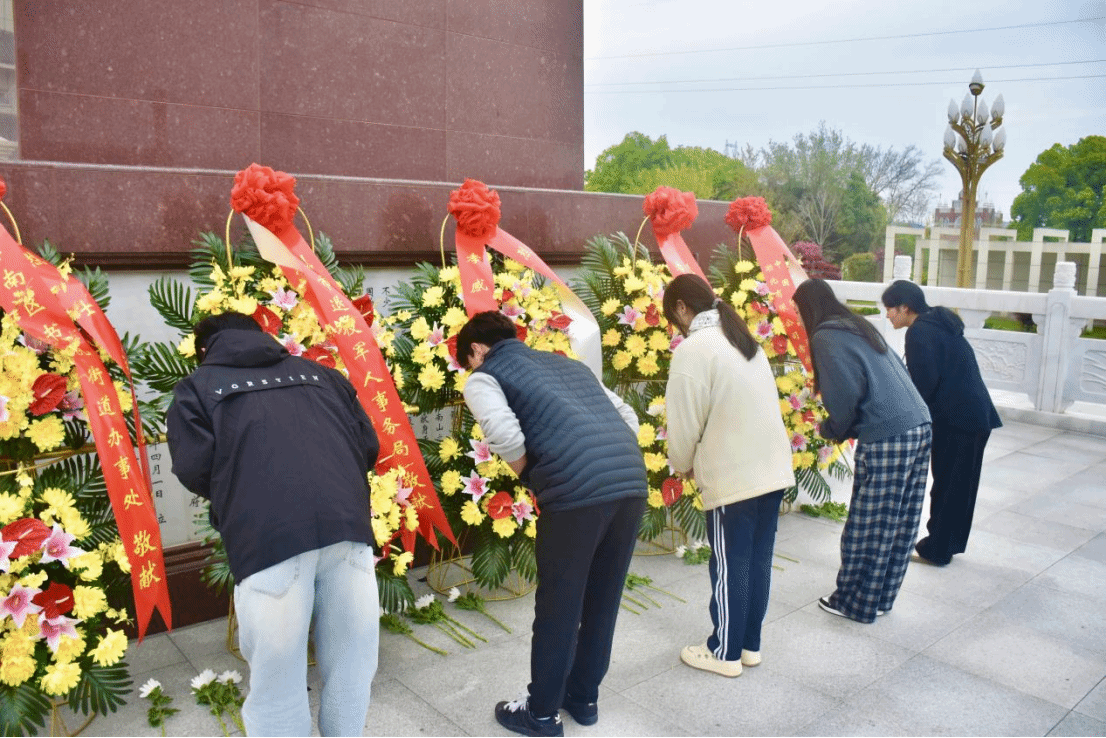 默哀结束,全体师生依次缓步走向烈士纪念碑,敬献花篮,肃立鞠躬,以庄重礼仪缅怀为国家和民族英勇献身的革命先烈。