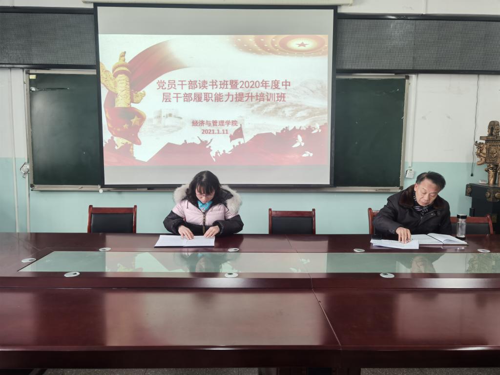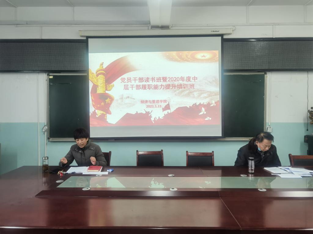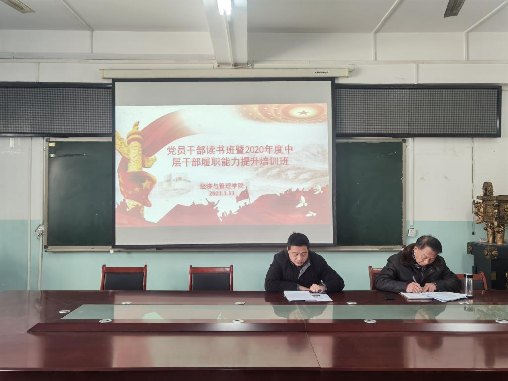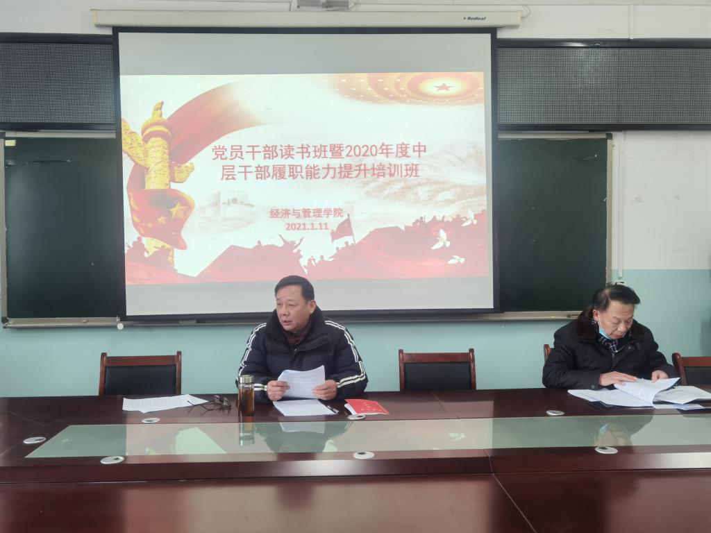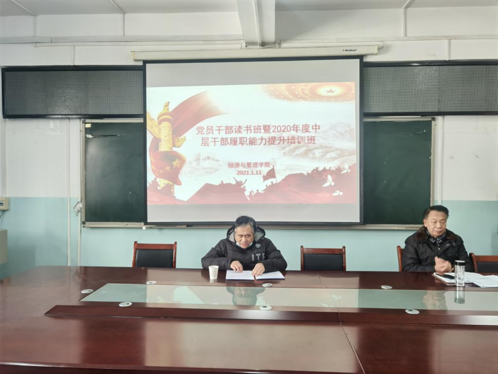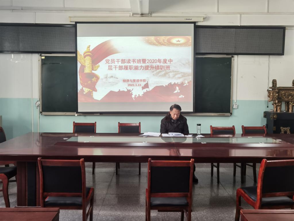 1月11日,我院开展党员干部读书班暨2020年度中层干部履职能力提升培训班。会议由党总支书记胡金林教授主持。院中层干部、组织员、科级党员干部、支部书记及党员系部主任参加会议。