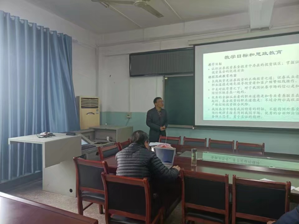 为了落实立德树人的根本任务,全面开展课程思政,教书育人,根据学校教学示范月活动总体安排,4月1日下午,经管学院在403会议室举行了“课程思政教学沙龙”活动。教学沙龙由经管学院副院长龙玉祥教授主持,同时特别邀请学校第一届师德标兵彭必源教授参加沙龙并作现场指导。 本次教学沙龙共有黄宏磊、吴义能、郭道猛、刘忠超、张承龙、匡天悦等6名教师分享了在课程教学中开展课程思政的做法与经验。