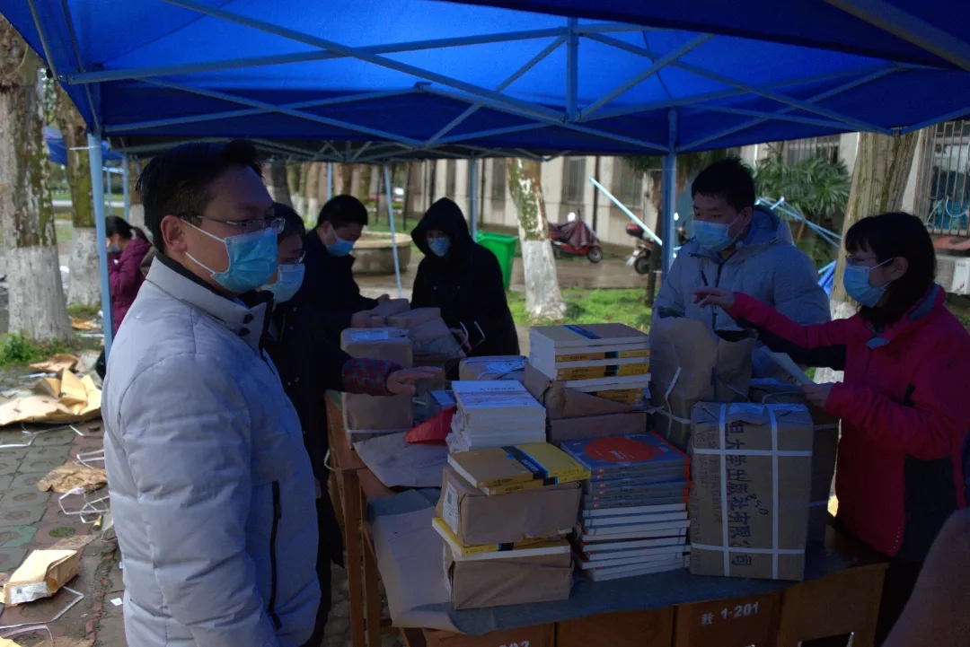 2022年3月20日下午,经管学院领导带领院教职工和学生志愿者为1千多名在校学生领取和分发教材。