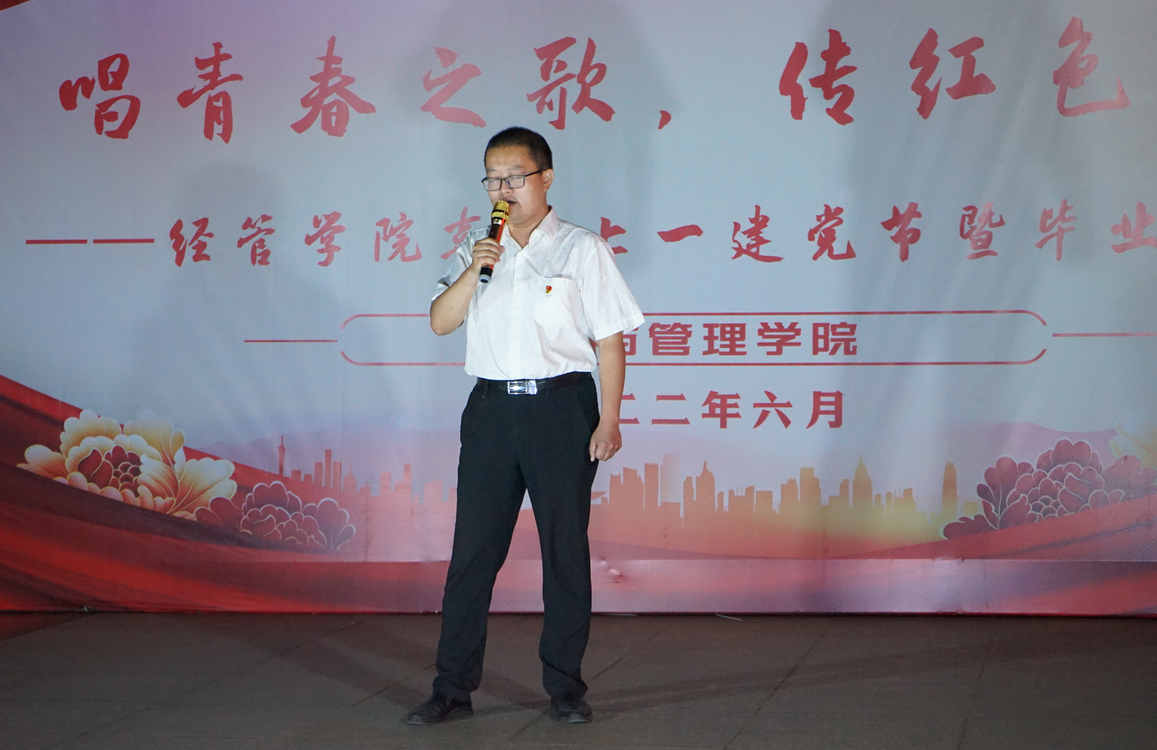 为迎接七一建党节和中国共产党第二十次全国代表大会的到来,在2022届毕业生奔赴新征途之际,我院于6月16日晚在经法楼前广场举办“唱青春之歌,传红色精神”喜迎七一建党节暨毕业生欢送会。本次活动由共青团williamhill英国委员会、williamhill英国学生会主办。williamhill英国党总支书记刘莉萍老师、院长张辉老师、班主任、辅导员及毕业生一同参与了活动。
