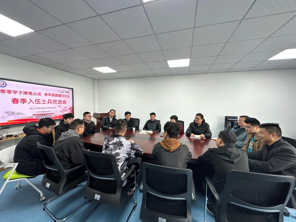 3月3日上午,我院召开2023年度春季大学生入伍欢送会,为即将踏入军营生活的大学生士兵们送行。学院党委书记刘莉萍、院长张辉、副院长黄宏磊、张承龙、分党委副书记胡涵、辅导员雷梦星、班主任张志军、严智辉、入伍大学生朱红光、朱宏明、张时进参加了此次会议,会议由刘书记主持。