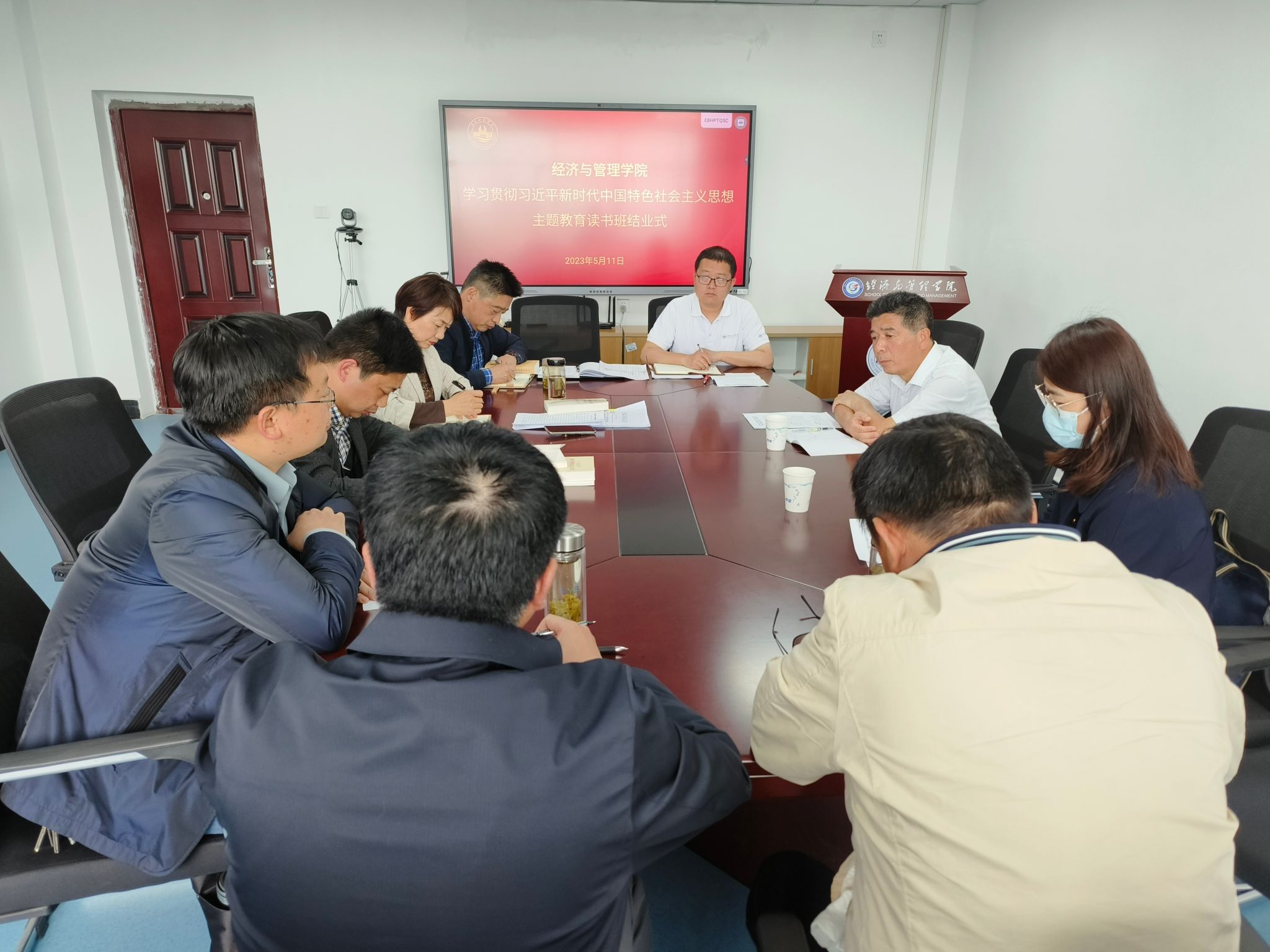 接着,领导班子成员依次开展读书心得体会的分享交流。张辉院长根据当前经济和社会发展形势,阐述了新时代中国特色社会主义背景下如何正确理解共同富裕的“富裕”内涵。黄宏磊副院长认为习近平新时代中国特色社会主义思想内容丰富、博大精深,将进一步增强政治信念,以学促知、以知促行,学以致用、学用结合。张承龙副院长分析了开展学习贯彻习近平新时代中国特色社会主义思想主题教育读书班的重要性,将切实增强思想自觉、政治自觉和行动自觉。胡涵副书记提出开展主题教育是一次深刻的思想政治洗礼、系统的能力本领锤炼和严肃的纪律作风教育,将努力在以学铸魂、以学增智、以学正风、以学促干等方面取得实在成效。刘莉萍书记作了《学习宣传贯彻党的二十大精神 推动学院思想政治工作上新台阶》的心得发言,提出要坚持党的领导,把握正确的政治方向;与时俱进,丰富新时代高校思想政治工作的内涵;改革创新,拓宽思想政治工作渠道,提高育人质效。
