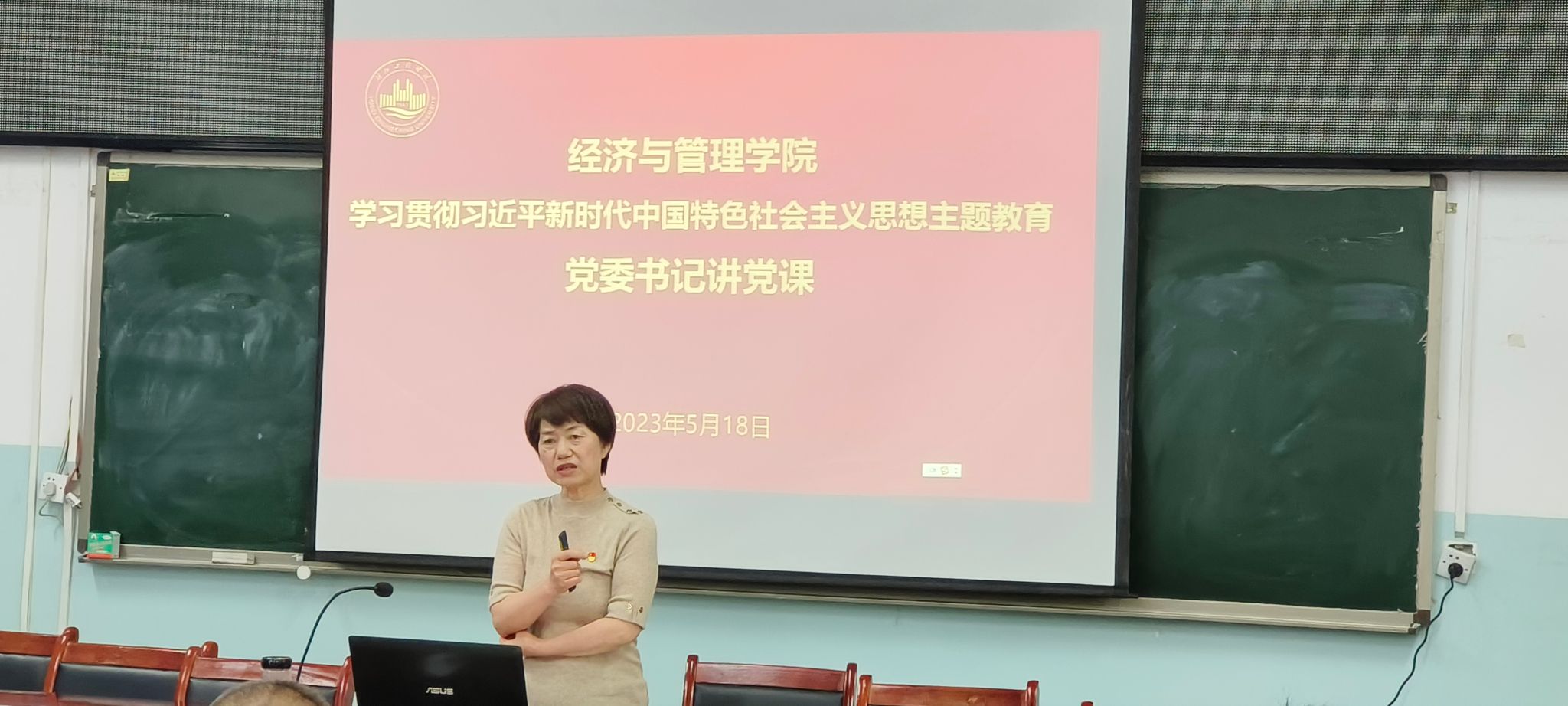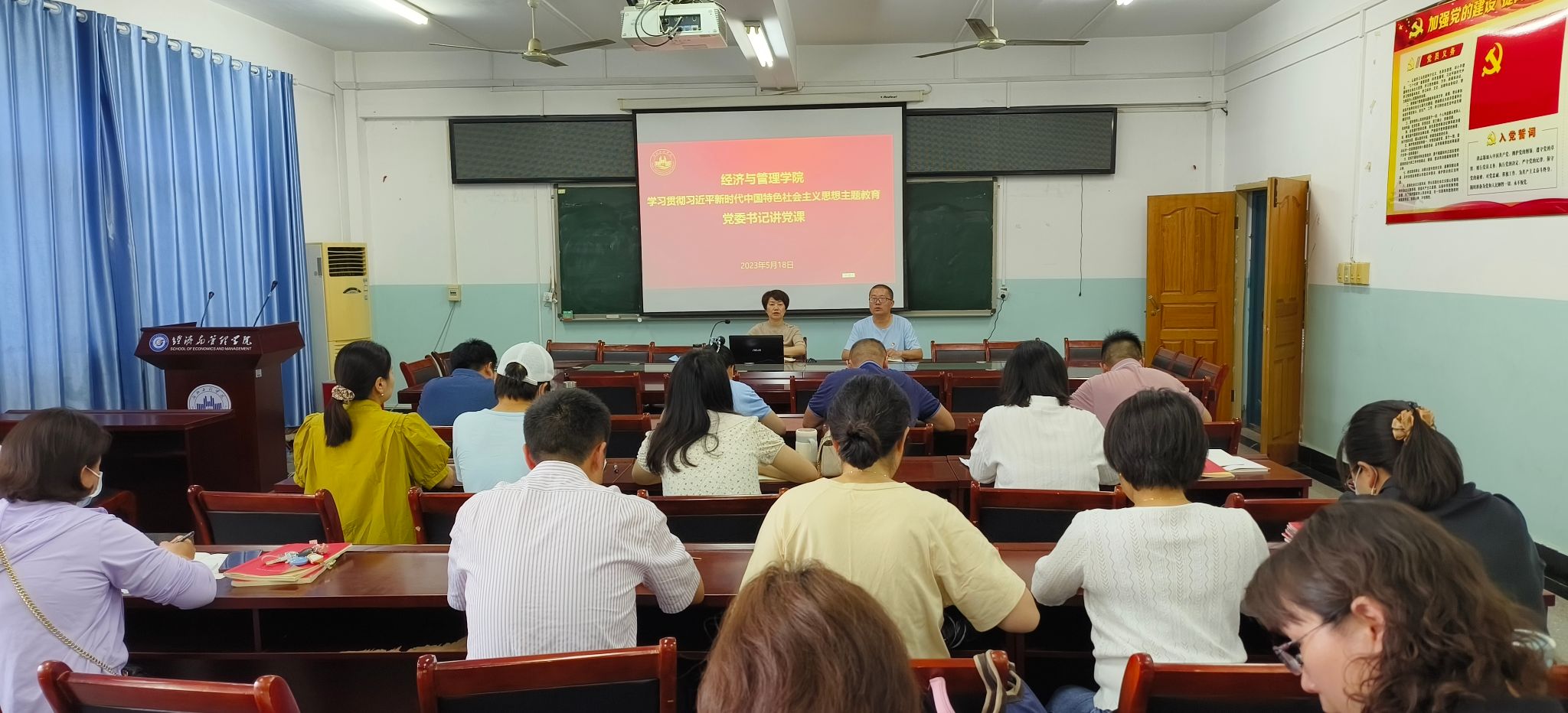 5月18日,williamhill英国在经法楼403会议室开展学习贯彻习近平新时代中国特色社会主义思想系列活动——党委书记讲党课。全体党员及党外知识分子参加,由党委副书记胡涵主持。
