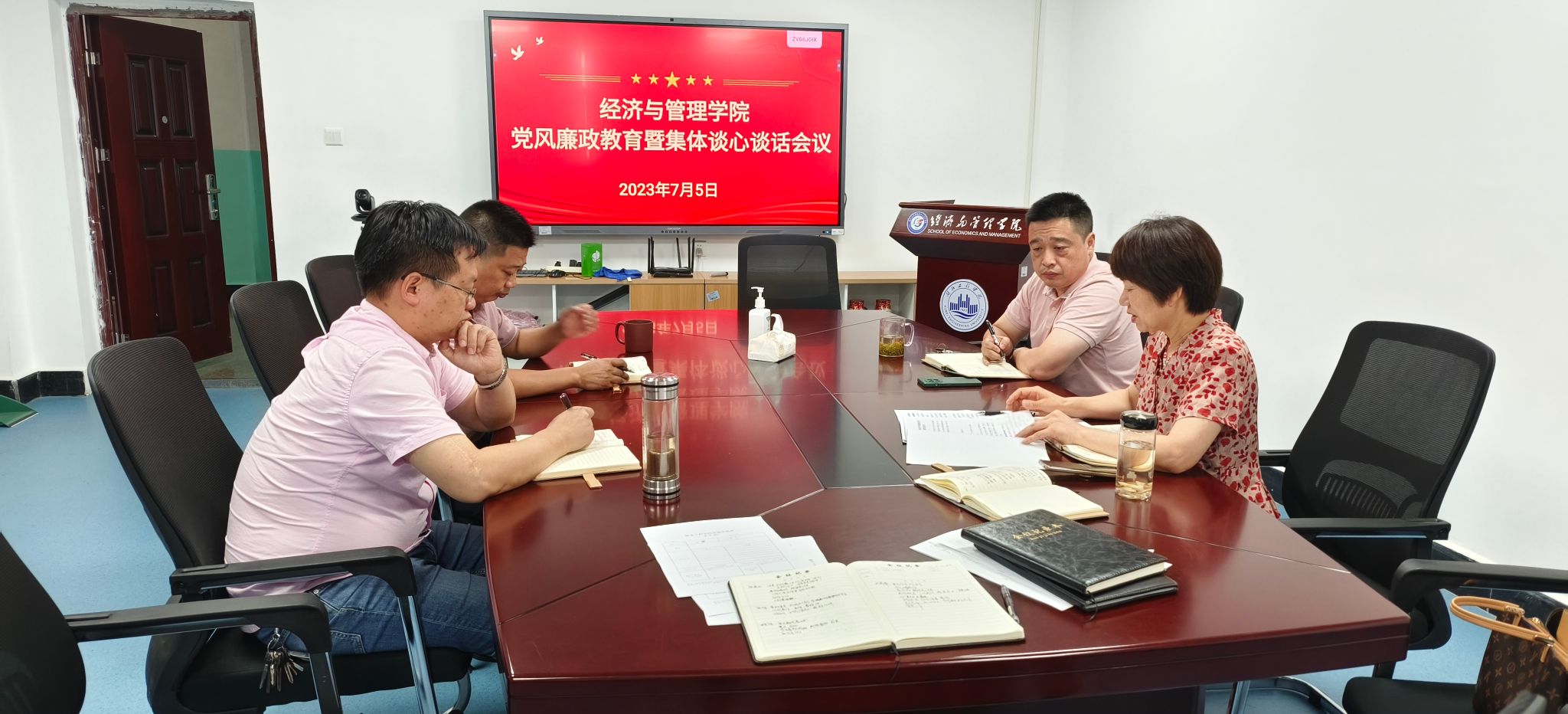 7月5日,我院在401会议室召开党风廉政教育暨集体谈心谈话会议,全体领导班子成员参加,会议由学院党委书记刘莉萍主持。