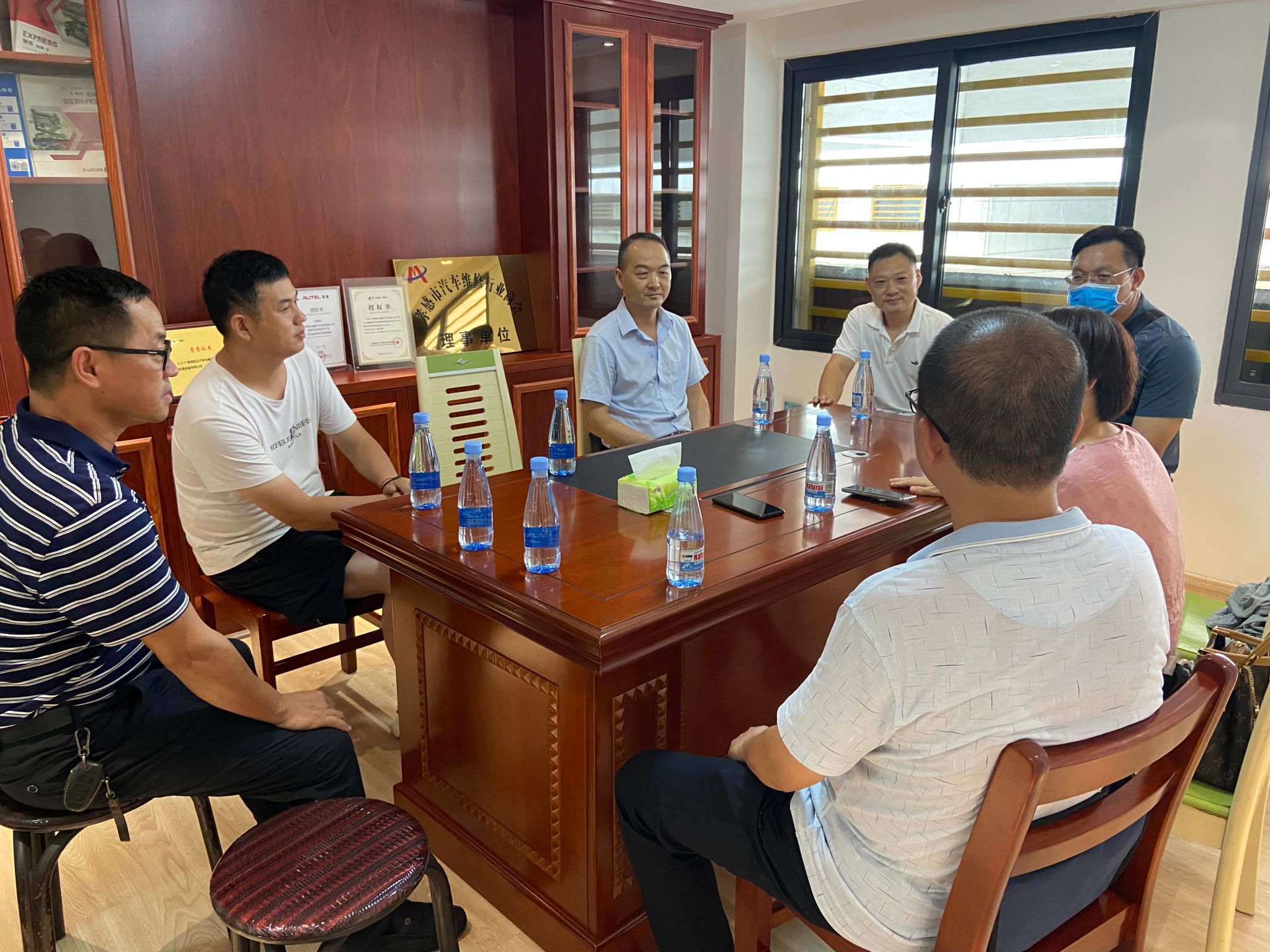 为增进校友情谊、深化校企合作、助推共建共赢,充分发挥校友企业资源优势,助力毕业生拓宽就业渠道,7月9日下午,经管学院党委书记刘莉萍、党委副书记胡涵、班主任杨明强、辅导员王春茹一行前往95级校友石恺的企业——孝感凯达汽保设备有限公司座谈交流,此次座谈会还邀请了湖北爱康汽车集团行政人力总监董君明、孝感市恒迪汽车销售服务有限公司总经理张跃平,共商校企合作事项。