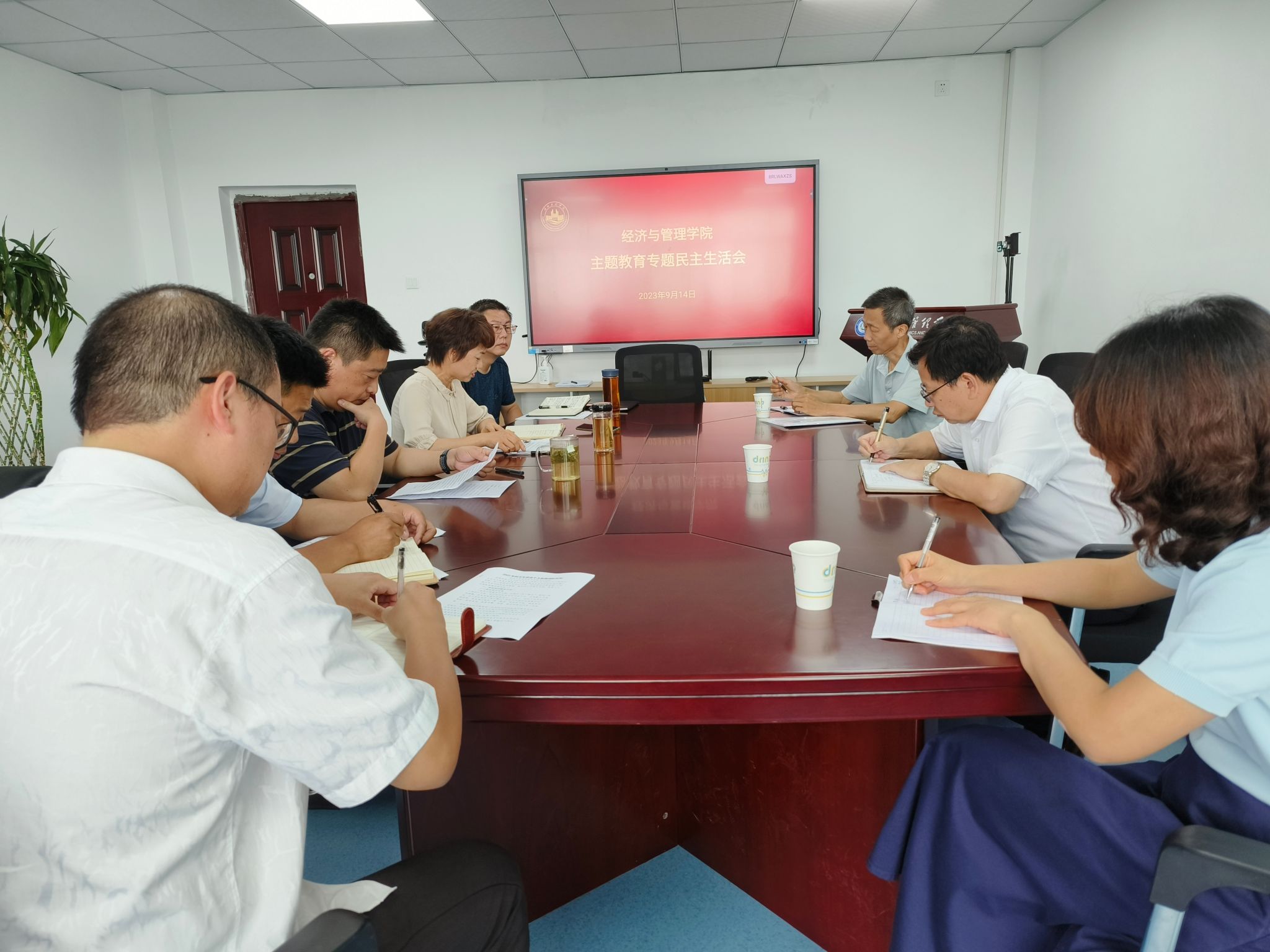 9月14日下午,我院在经法楼401会议室召开了学习贯彻习近平新时代中国特色社会主义思想主题教育专题民主生活会。学校党委常委、副书记丁远坤、督导组成尚军、组织员和联络员陈丽芬老师一行莅临指导,学院全体领导班子成员参加。会议由党委书记刘莉萍主持。
