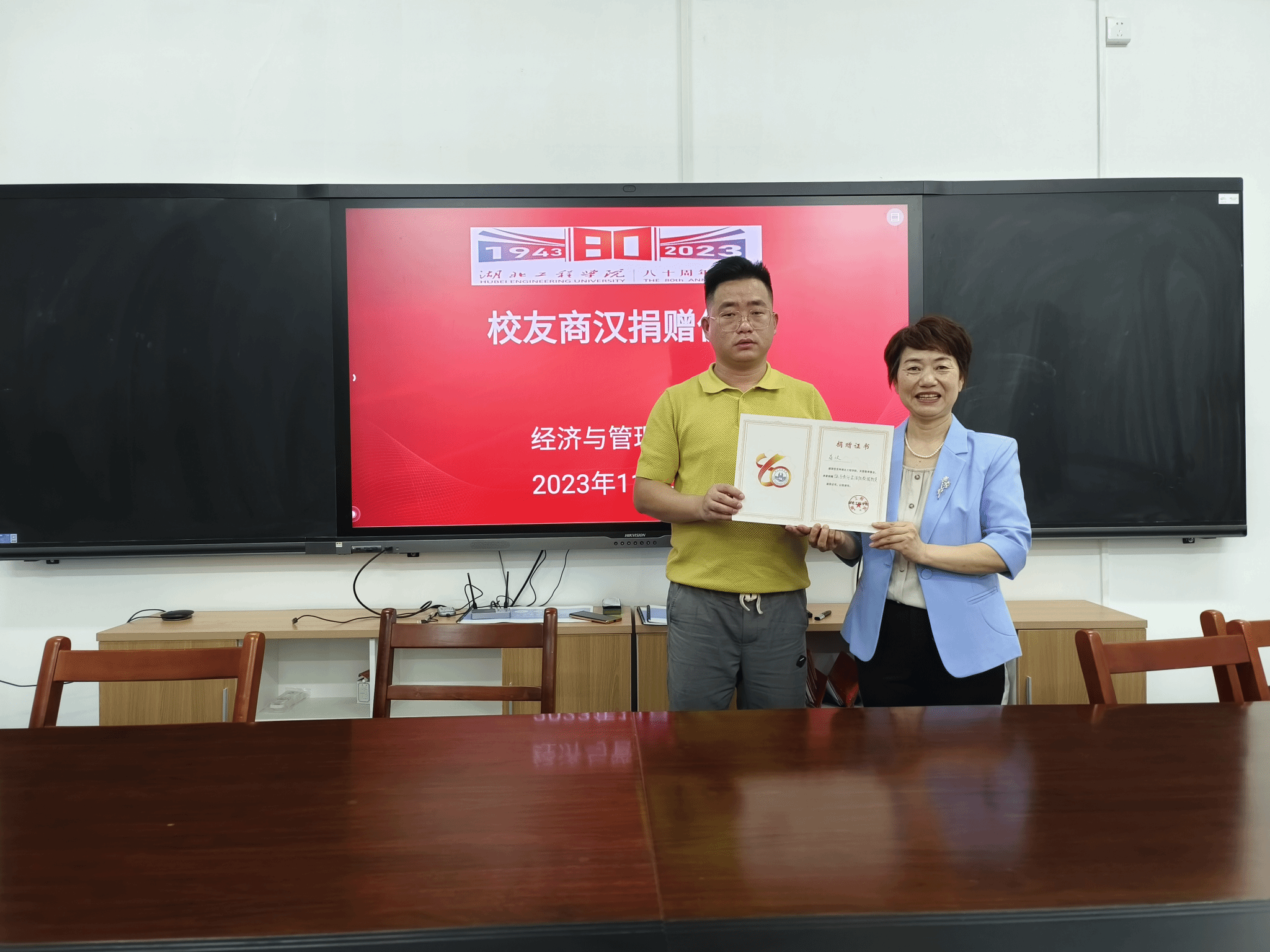 11月3日,我院16届经济学校友商汉向学院捐赠了一批物资,祝贺母校八十周年校庆,表达对母校的恩情。捐赠仪式在经法楼410会议室举行,学院领导班子、班主任、教师代表和学生代表参加,仪式由学院党委书记刘莉萍主持。