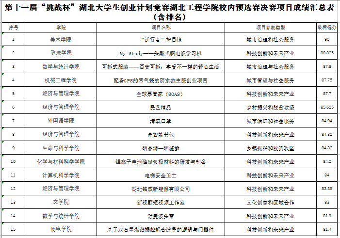 本次“挑战杯”创业计划竞赛校内预选赛的举办,旨在培养青年学生的创新意识、启迪创新思维、提高创造能力,造就创业人才,希望我们的参赛选手能再接再厉,在省赛中取得更好的成绩。