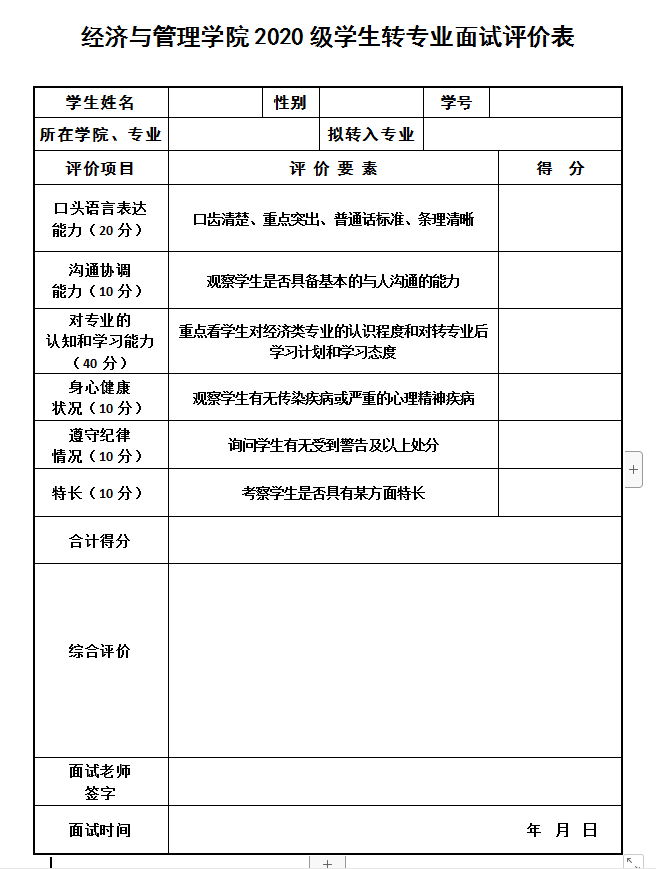 根据学校教务处《关于做好2020级学生转专业工作的通知》精神,结合经管学院实际,经研究,决定对2020级申请转入经管学院的学生进行一次面试。具体方案如下: