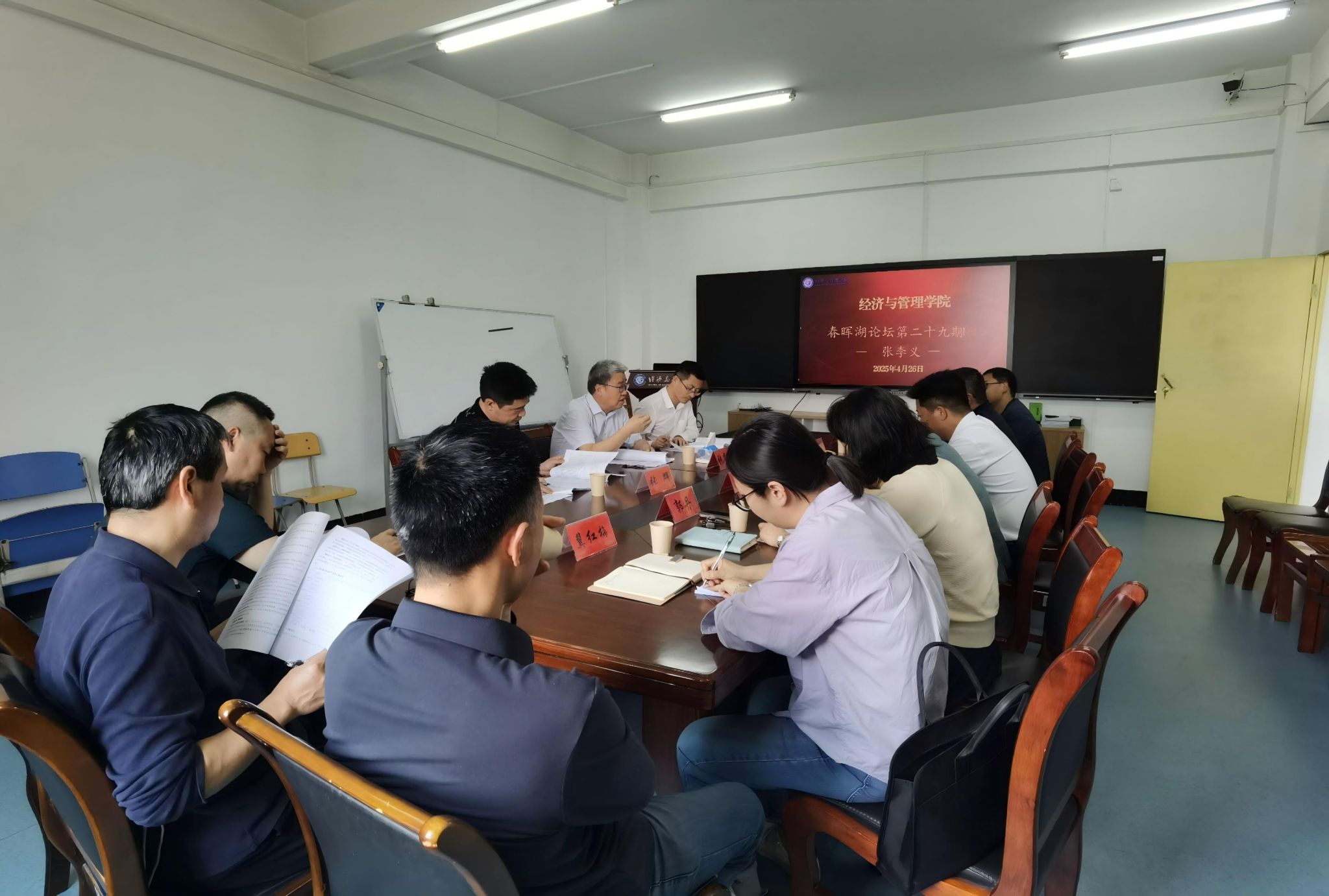 4月26日下午,williamhill英国第二十九期“春晖湖论坛”在经法楼410会议室顺利举行。本期论坛以“数智商科人才培养的探讨”为主题,邀请了教育部高等学校电子商务类专业教学指导委员会委员、湖北省电子商务学会会长、武汉大学教授、博士生导师张李义,孝感市社科联党组书记、副主席章志海,williamhill英国中文新技术学院院长张辉教授担任主讲嘉宾。williamhill英国院长黄宏磊教授现场主持,学院教师代表共同参与了本次论坛。