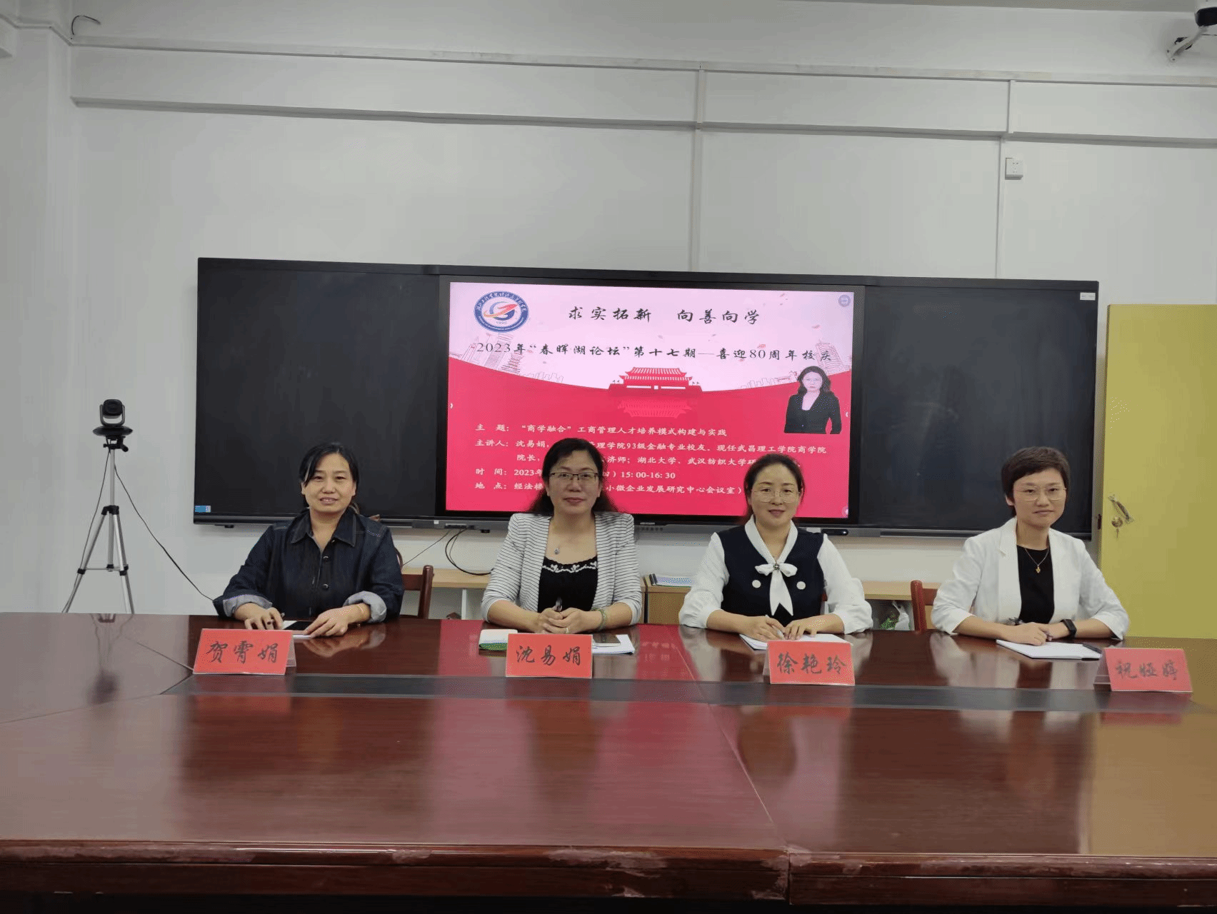 11月2日(周四)下午,“春晖湖论坛”第十七期在经法楼湖北小微企业发展研究中心会议室成功举行。经管学院93级贸易经济专业校友,现任武昌理工学院商学院院长沈易娟教授及其教学团队为大家带来了一场题为《“商学融合”工商管理人才培养模式构建与实践》的专业课程建设与人才培养学术交流活动。经管学院全体班子成员,教学团队负责人及骨干教师参加了本次论坛。