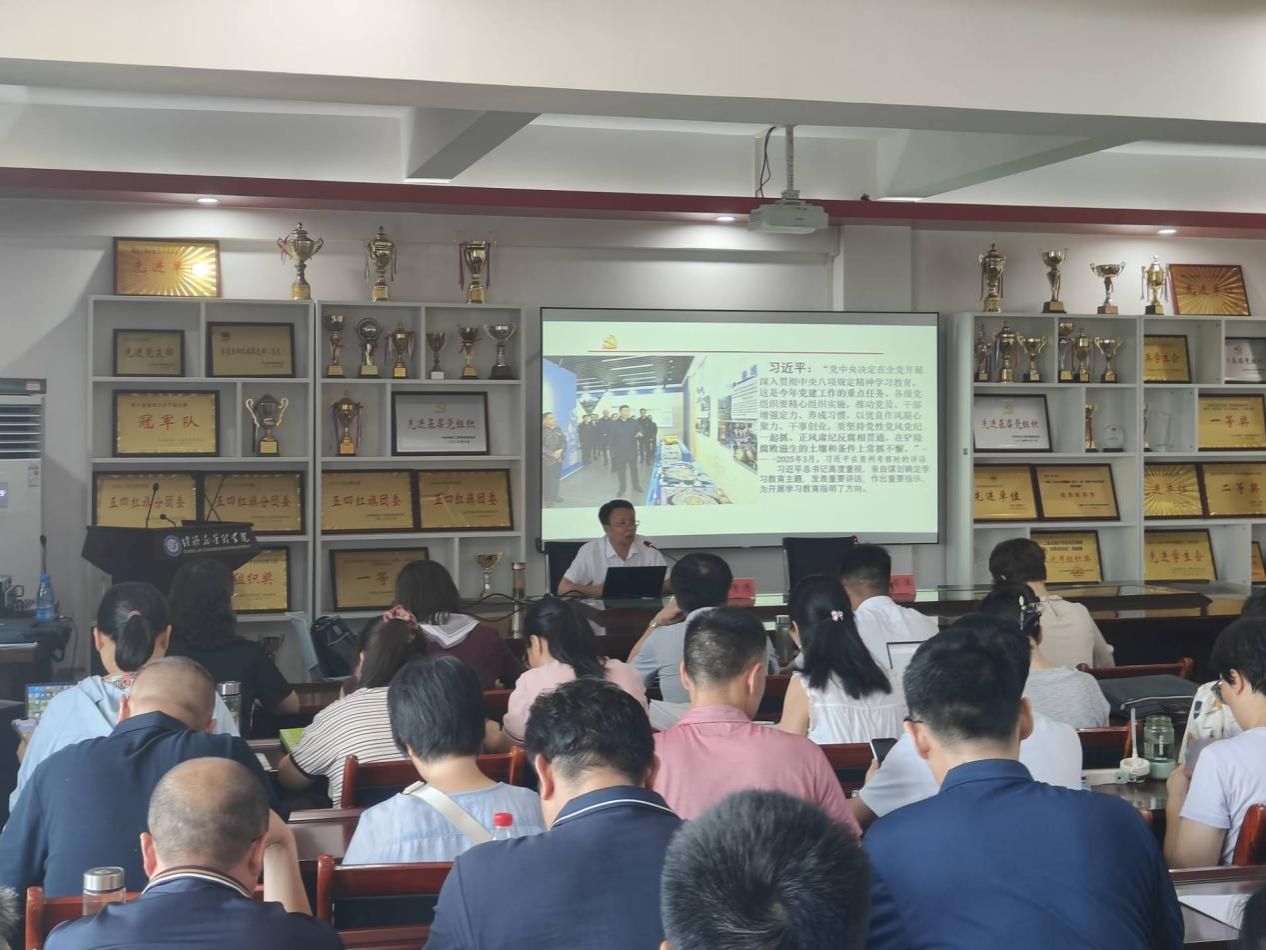 袁学清教授在报告中对中央八项规定精神进行了全面且深入的阐释。他首先强调要充分认识开展学习教育的重大意义。开展学习教育,是贯彻落实党的二十届三中全会精神、巩固拓展主题教育和党纪学习教育成果的必然要求;是密切党群干群关系、巩固党的执政基础的必然要求;是推进中国式现代化的必然要求;更是继承和弘扬党的作风建设优良传统的必然要求。在剖析中央八项规定精神核心要义时,袁教授强调要把握要点,通过动员令、承诺书,小切口、抓“关键少数”、风纪同抓、风腐同查,建章立制、固本培元,从而实现管长远且成效显著。他强调,中央八项规定精神实质涵盖密切联系群众、求真务实、厉行勤俭节约、反对奢侈浪费和奢靡之风、遵规守纪、清正廉洁等方面,要结合学习教育查摆自身问题,引导党员深刻反思自身是否真心为民、是否求真务实、是否厉行节约、是否遵规守纪、是否担当作为、是否言行一致。此外,袁教授还详细列举了违反中央八项规定精神的问题类型和清单,结合基层典型案例,提出破除形式主义、官僚主义的具体路径,强调“精准把握实践要求,须从细微处发力,于长效中落实”。