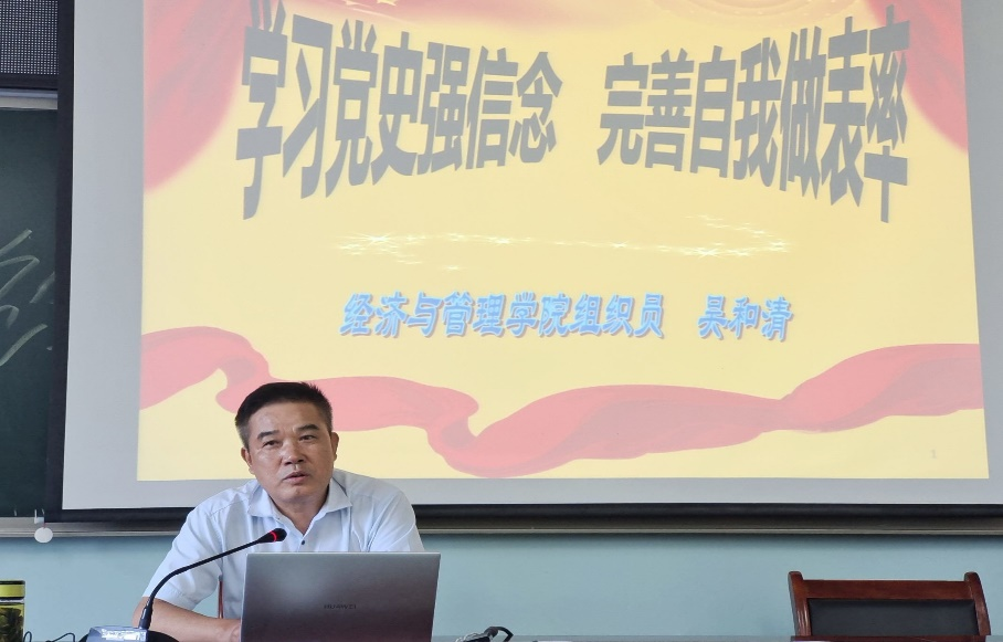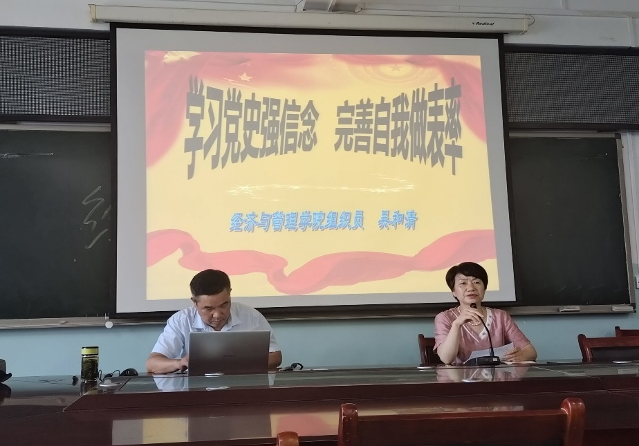 6月17日下午,williamhill英国在经法楼403教室给学生党员上党课,由组织员吴和清主讲,主题是“学习党史强信念 完善自我做表率”,党总支书记刘莉萍主持。