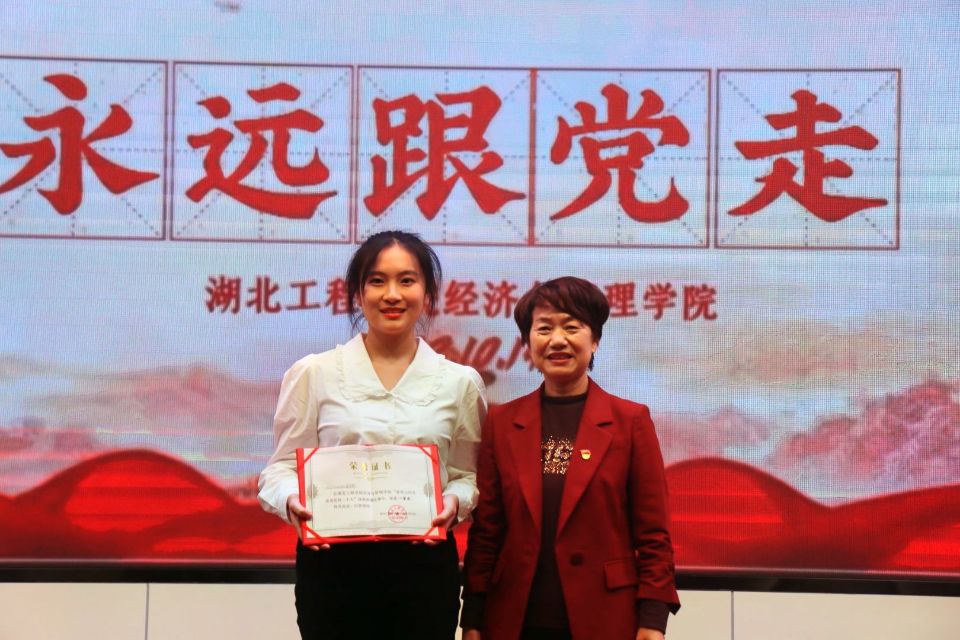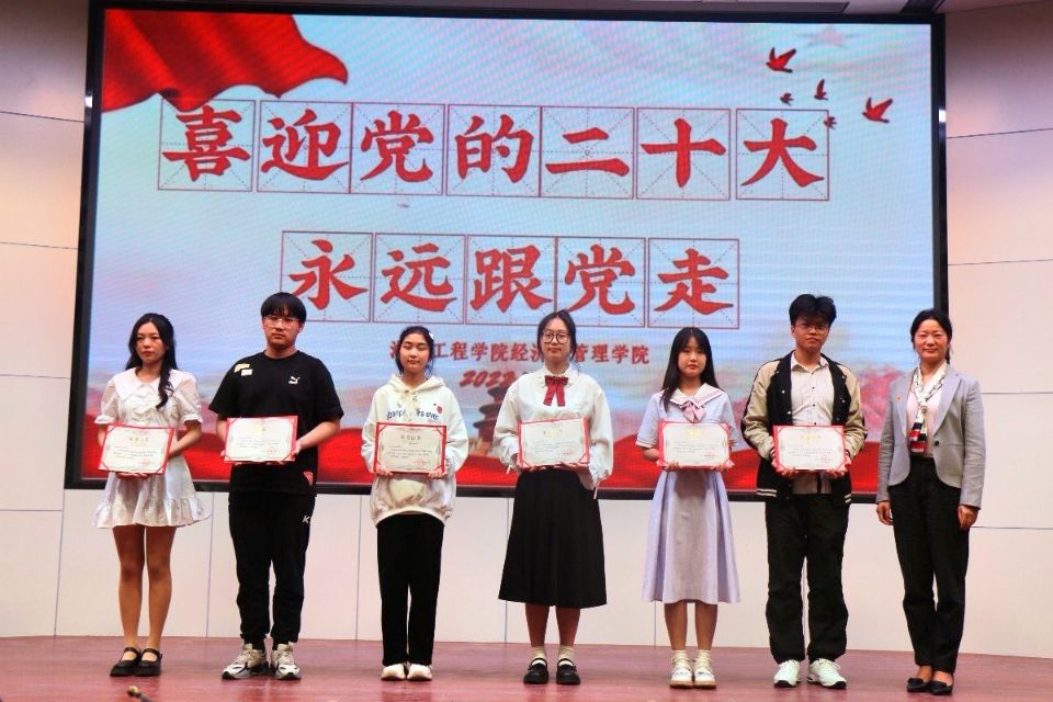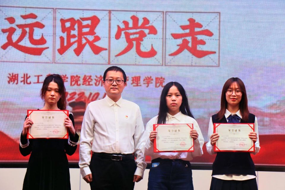 评委老师们对朗诵作品进行了现场打分评选,我院分党委书记刘莉萍为荣获一等奖的《党的二十大之歌》颁发获奖证书;分党委副书记胡涵为荣获二等奖的《红船,从南湖启航》《盛世中国》《党旗红》颁发获奖证书;教工一支部书记郭丹为荣获三等奖的《新时代好青年,强国有我》《与时代同响 与祖国同行》《喜迎党的二十大 青春著华章》《党的赞歌》《青春向党报告》《百年颂歌》颁发获奖证书;教工二支部书记冀红梅为荣获优秀作品奖的《喜迎党的二十大 湖工颂中华》《永远跟党走》颁发获奖证书。