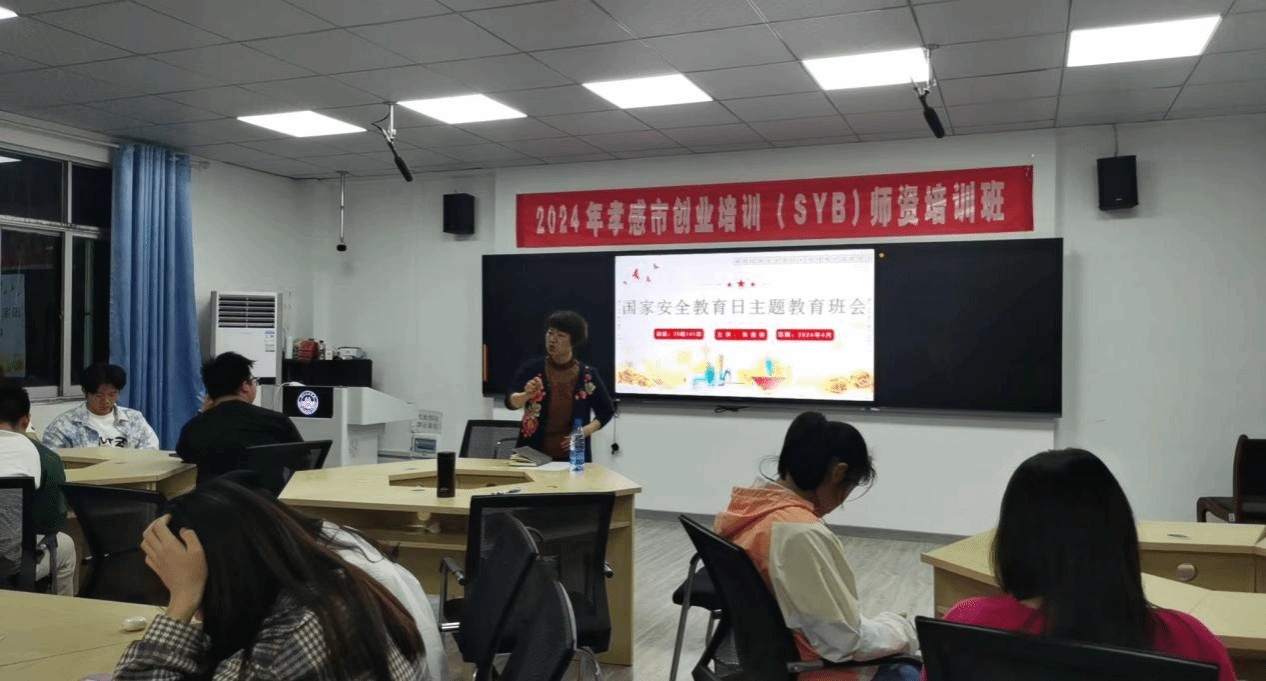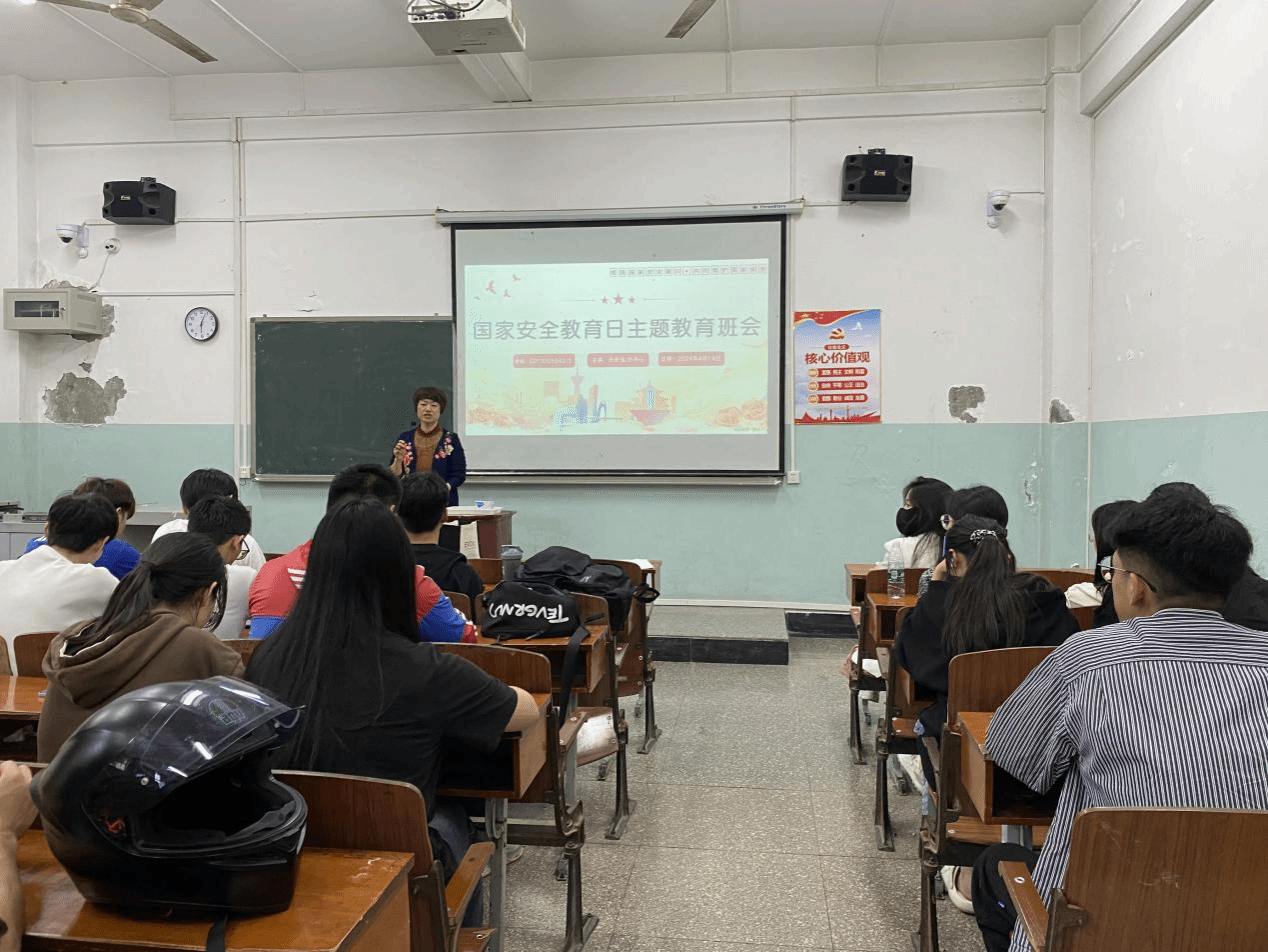 图为教师第二党支部书记冀红梅在23级542班参加国家安全教育日主题班会活动。