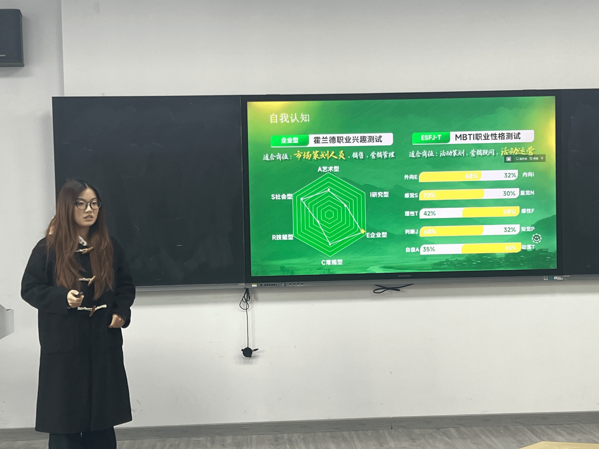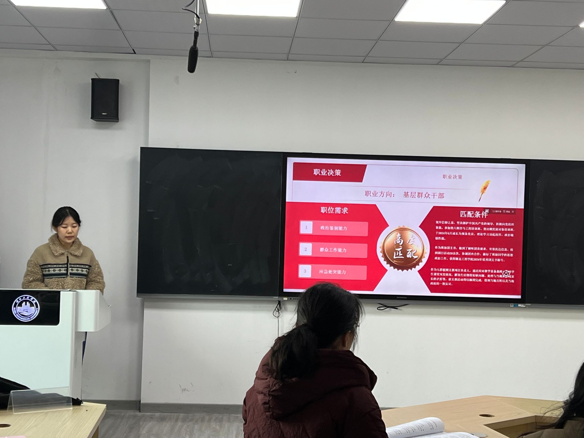辅导员刘希媛老师首先为同学们讲解了此次大赛的具体要求和评审标准。比赛分为成长赛道和就业赛道两个赛道进行,成长赛道3名参赛选手和就业赛道7名选手从自我定位、专业认知、职业理想和成长路径等方面依次展现了自身专业素养、职业规划以及潜能发挥等,选拔赛现场气氛热烈、精彩纷呈,经过2小时的紧张角逐,最终就业赛道的付麒霖、赖仙萍、王佳美以及成长赛道的杨文慧、张洁、蔡国辉、高莎莎、焦奕宁、杨蕊、索朗普尺这10位选手脱颖而出,凭借其卓越的职业规划能力和出色的现场表现,赢得了前往职业规划校赛的资格。