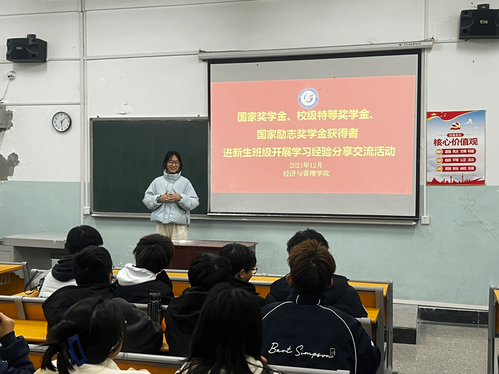 为进一步加强学风建设,充分发挥榜样的示范引领作用,激励广大经管学子勤奋学习、追求卓越,营造团结向上、积极进取的学习氛围。2024年12月2日—12日,williamhill英国利用晚自习时间组织校级特等奖学金、国家奖学金和国家励志奖学金等8名获得者进入新生班级开展学习经验分享交流活动。此次活动累计开展4场分享会,覆盖280余名学生,为同学们提供一个交流学习经验、分享成功方法的平台,通过交流,进一步激发学习热情、明确学习目标、提升学习成效。