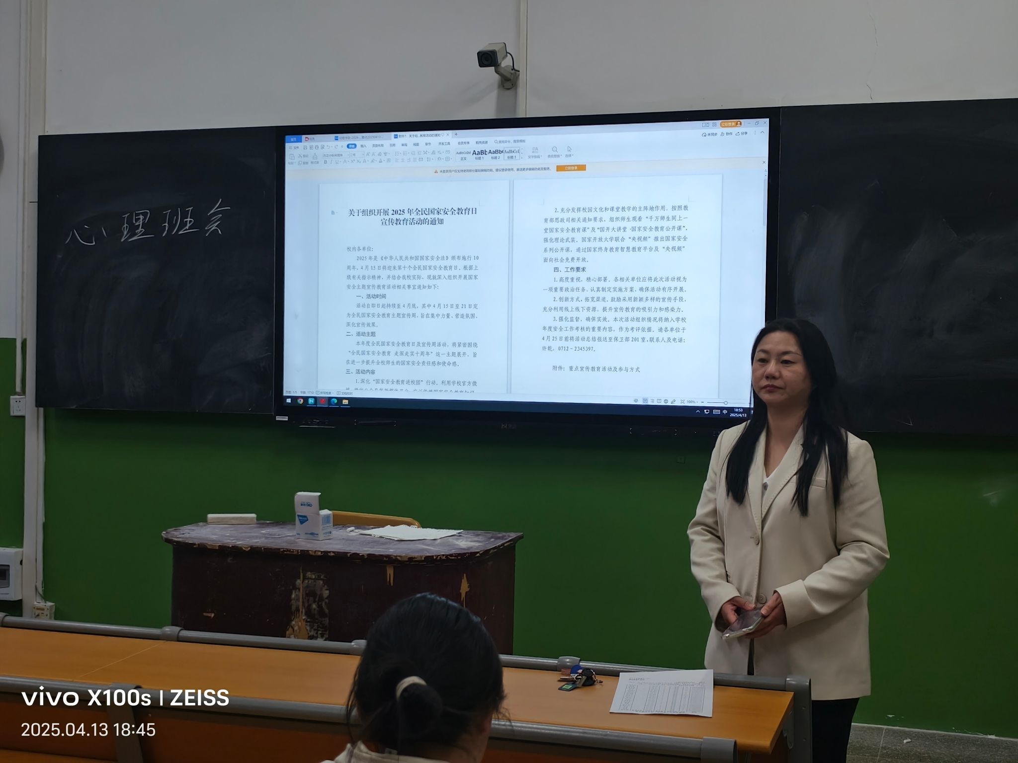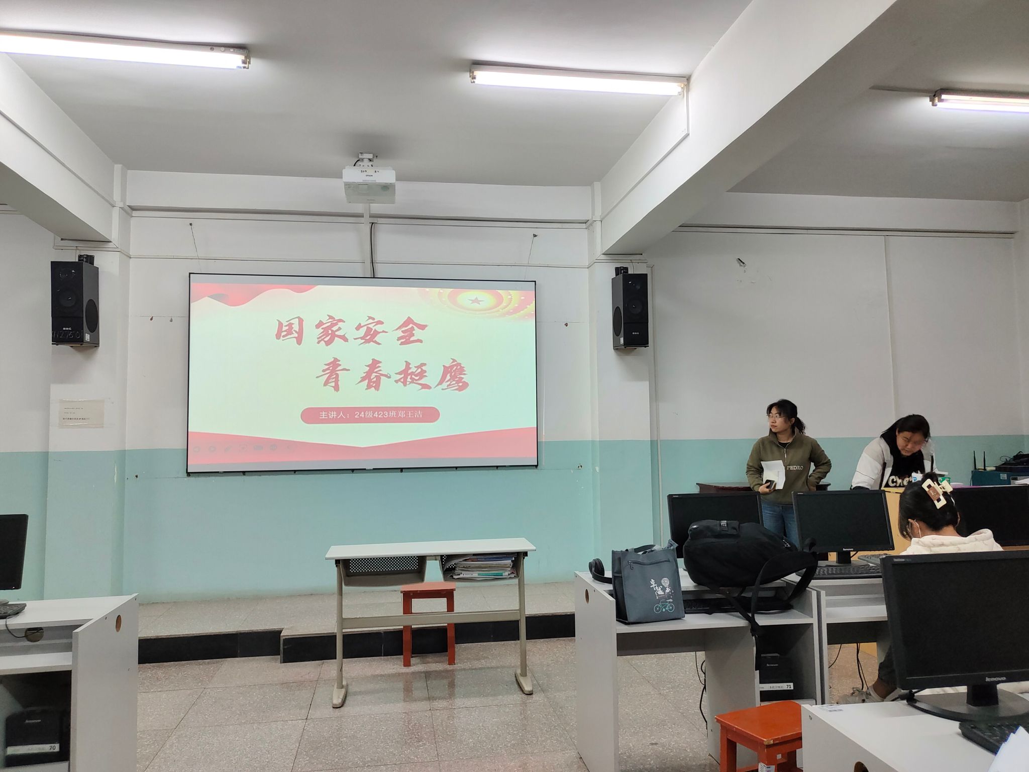 二是利用主题班会,开展安全教育研讨交流,筑牢安全底线。开展以“国家安全,青春挺膺”为主题的团日活动,各班团支书带领同学们围绕国家安全教育日的由来、哪些属于危害国家安全的行为、如何维护国家安全以及谁来保护国家安全四个方面展开了学习和研讨,教育引导学生们树立国家安全意识,提高同学们在学习生活中防范国家安全风险的思想自觉和行动自觉,增强同学们的政治素养、家国情怀和民族自豪感。通过理论学习、案例讲解和研讨交流,学生们更加深刻地认识到,国家安全就在身边,我们每位同学都是国家安全的防御线,青年大学生更要在维护国家安全上挺膺担当,矢志不渝听党话、跟党走,同心共筑国家安全防线。