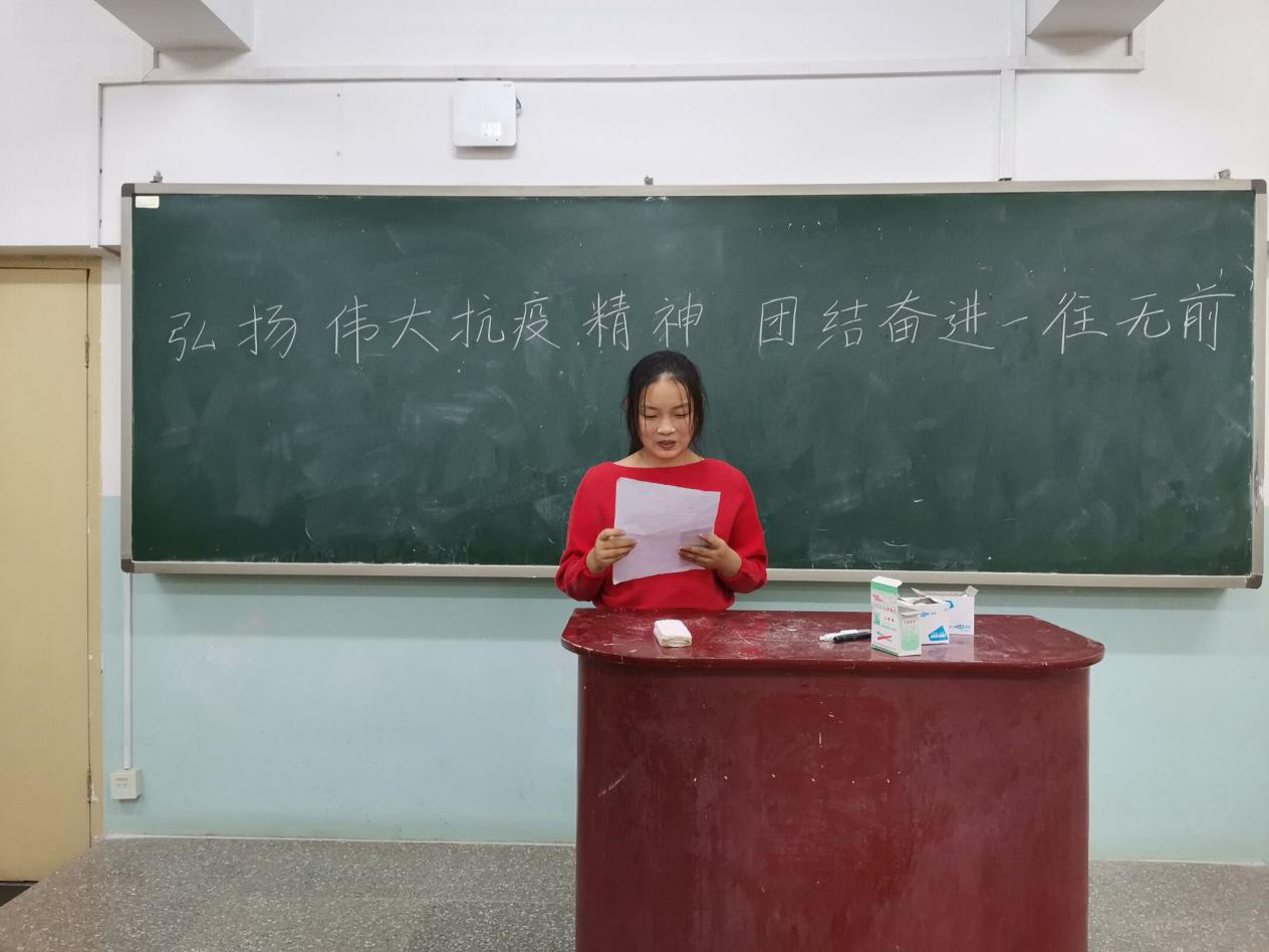 为了更好的让学生深入学习中国“抗疫”故事和先进典型事迹,利用中国抗“疫”取得的伟大胜利这一鲜活素材,对学生进行爱党爱国教育、理想信念教育、社会主义核心价值观教育,我院于9月20日晚特邀请疫情期间参与了抗疫的经管学院志愿者进班宣讲抗疫事迹。