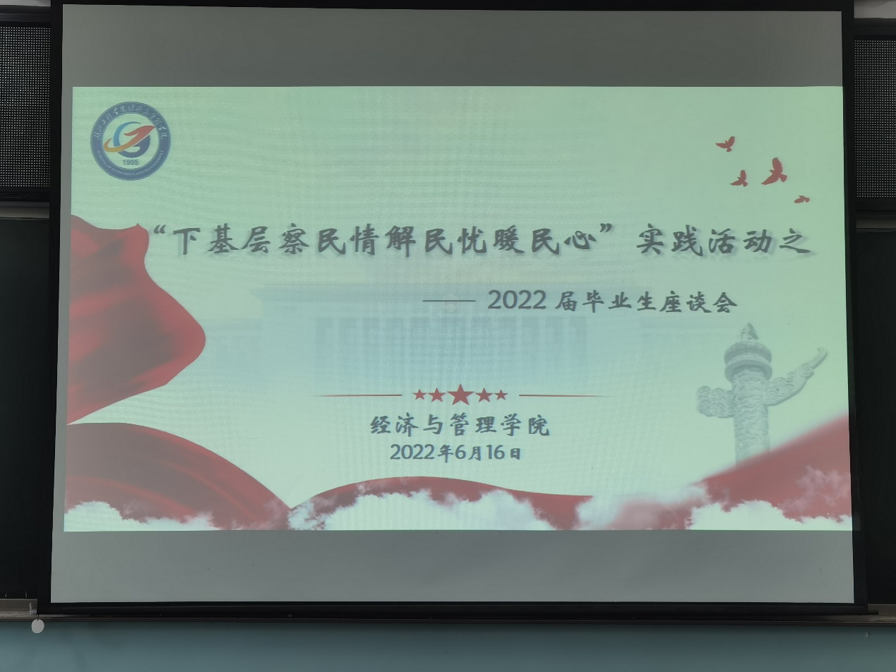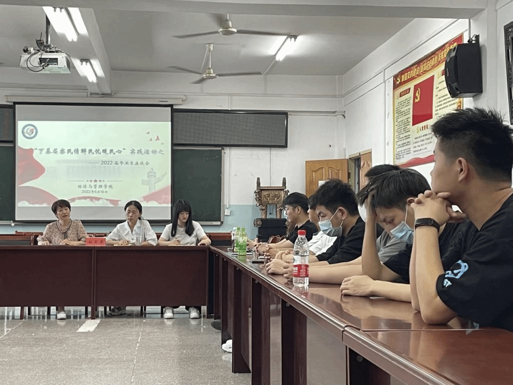 6月16日14:30,经法楼403教室开展了关于“下基层察民情解民忧暖民心实践活动”的毕业生座谈会。围绕学生关心的后勤服务、教学管理、培优辅差等问题深入座谈,坦诚交流。刘莉萍书记,辅导员雷梦星老师,辅导员吴俊成老师出席本次座谈会。