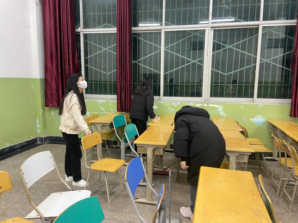 主题班会前,各班主任组织学生对晚点评教室进行了认真的清扫和消毒,同学们将桌椅板凳、地面和黑板都进行了清理,教室变得干净整洁、焕然一新。