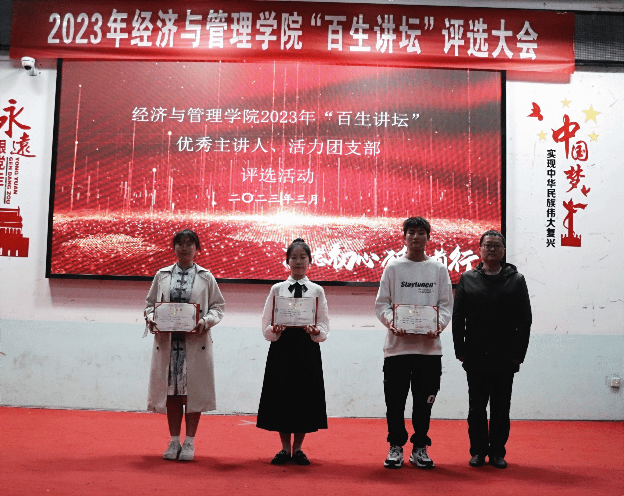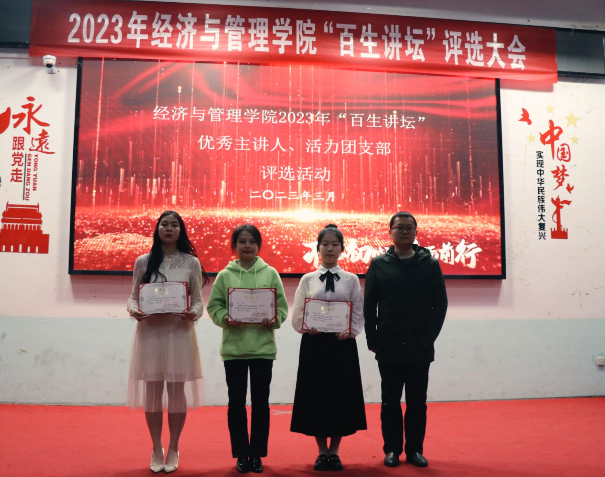 经过两个小时的精彩角逐,我院“百生讲坛”优秀主讲人和活力团支部评比活动圆满结束。根据提交材料和展示情况,以下是获奖名单: