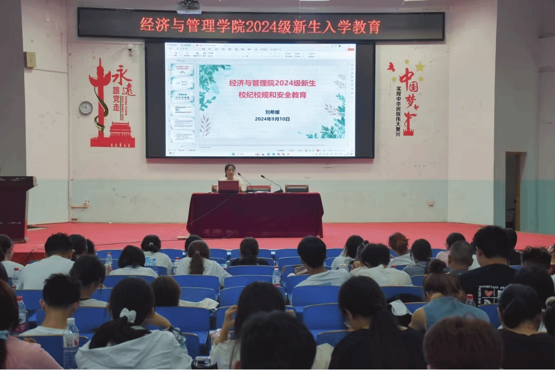 9月11日,学院党委副书记胡涵为新生讲授爱国主义教育专题党课,强调青年大学生要立志做有理想、敢担当、能吃苦、肯奋斗的新时代好青年。青年一代有理想、有担当,国家就会有前途,民族就会有希望。胡涵老师指出,全体经管学生要坚定不移听党话、跟党走,深入学习贯彻党的二十届三中全会精神,扛起时代责任,以青春之我、奋斗之我投身于中国特色社会主义的伟大实践,奋力书写为中国式现代化挺膺担当的青春华章。