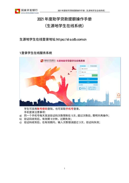 2021年度助学贷款提额操作手册(生源地学生在线系统)
