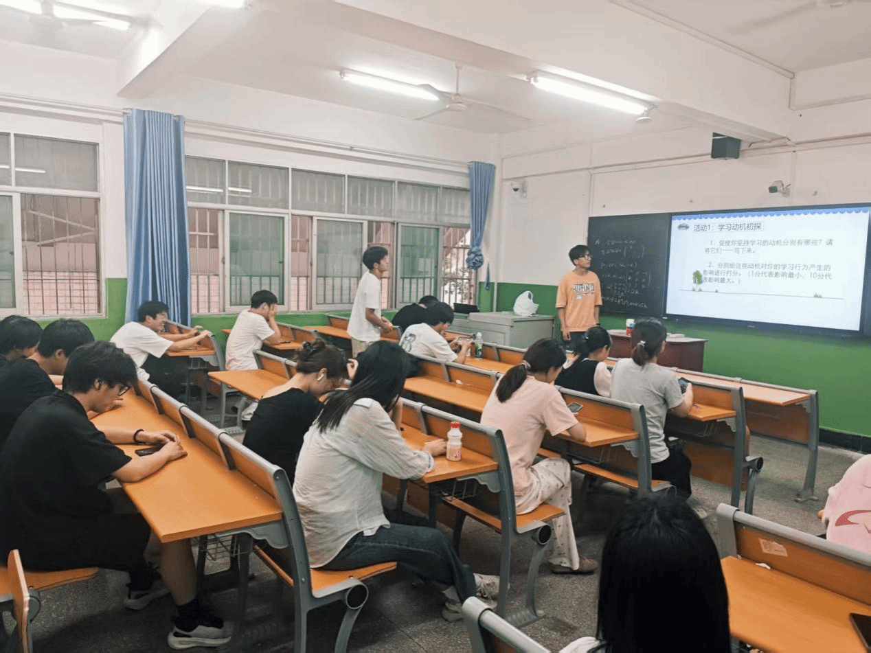 在“提高学习动机”环节,同学们认真填写了“我的学习动机清单”。大家仔细梳理了支撑自己学习的各种因素,评估其重要性,并尝试区分动机类型。随后,通过观看启发视频和热烈的小组讨论,同学们集思广益,分享了众多提升学习动力的“锦囊妙计”。班主任适时总结,提炼出实用建议:向内,可设定清晰目标、发掘学科兴趣点、制定可行计划、体验小成就、劳逸结合;向外,则可结伴学习互相督促、设置阶段性小奖励、寻求师长监督等。这一过程引导同学们更清晰地认识自我,学会理性调整学习驱动力,为求知之路增添动能。