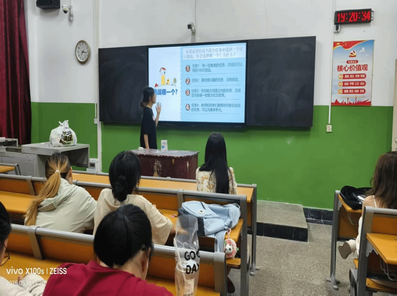 班会聚焦“学习心理”,设计了丰富的互动环节。班会伊始,通过趣味选择题,引导同学们思考自己行动背后的驱动力。班主任深入浅出地讲解了“内部动机”(如兴趣、求知欲)与“外部动机”(如奖励、评价)的区别与联系,帮助大家认识到,源于内心的热爱更能为学习提供持久而稳定的能量。