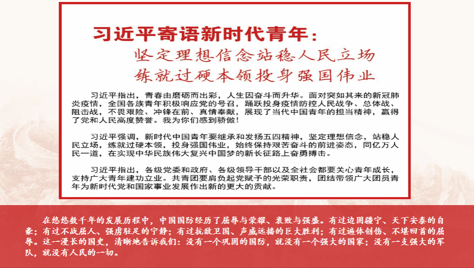5月25日晚,经管学院各班级利用晚点评时间,集中开展“参军入伍,无上光荣”国防教育主题班会活动。班主任老师对国防教育基础知识、大学生入伍优待政策和参军入伍报名流程进行了重点讲解,在青年学子心中厚植了家国情怀,激发了同学们参军报国的热情。