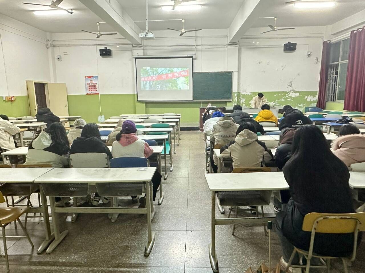 随后,由班主任向学生介绍2024年参军入伍政策,重点向学生解读了大学生应征入伍基本条件、流程、政策、优抚待遇等事项,激发了有志青年的参军报国热情,推动大学生积极响应国家号召,携笔从戎,到火热军营建功立业!