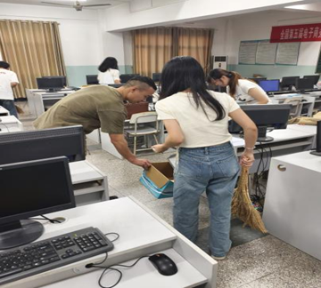 经过同学们共同努力,机房环境焕然一新。大家重点对地面灰尘、墙角污渍、桌椅摆放等进行了彻底处理,为广大师生创造了一个更为舒心的学习与工作环境。