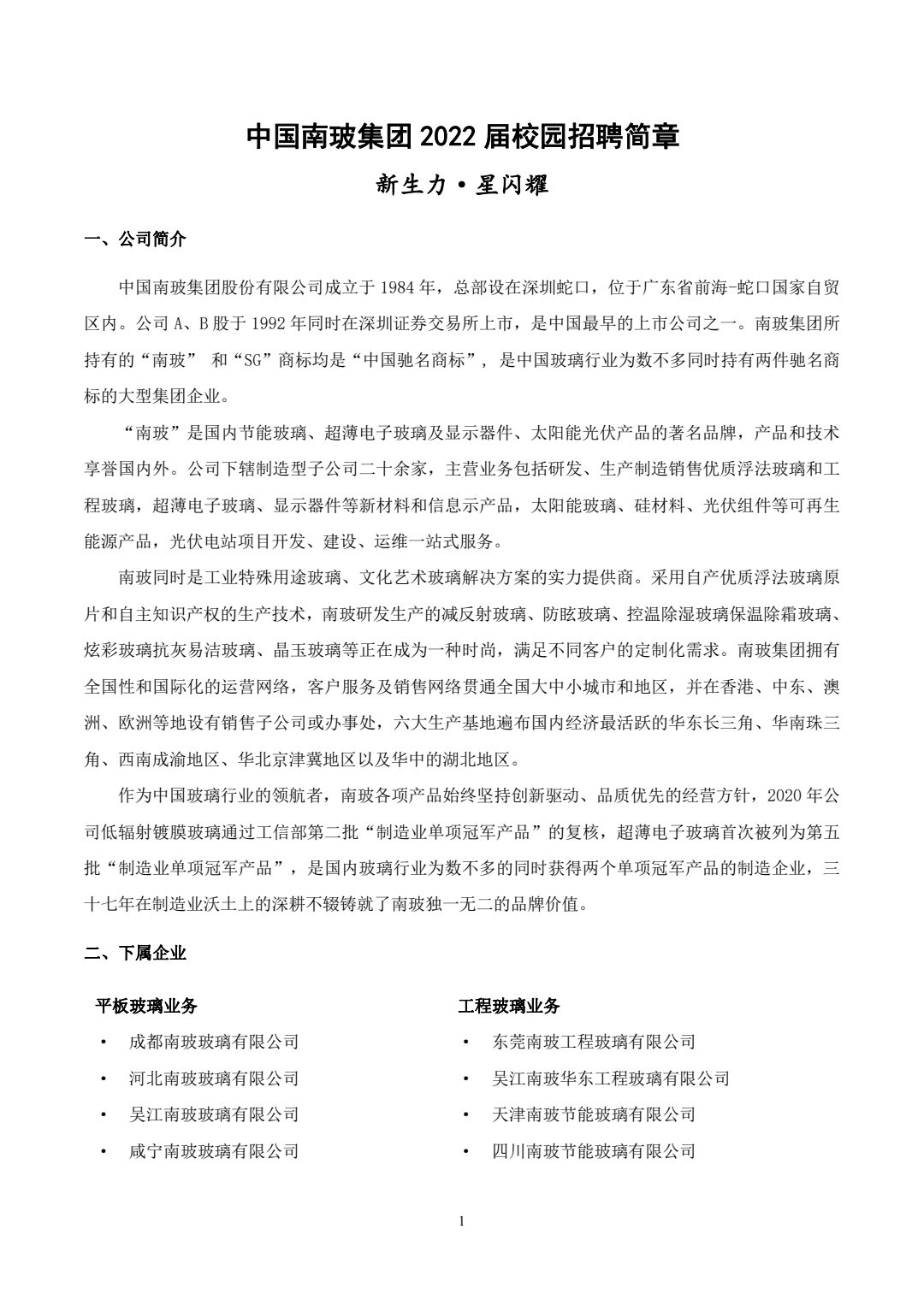 中国南玻集团2022届校园招聘简章