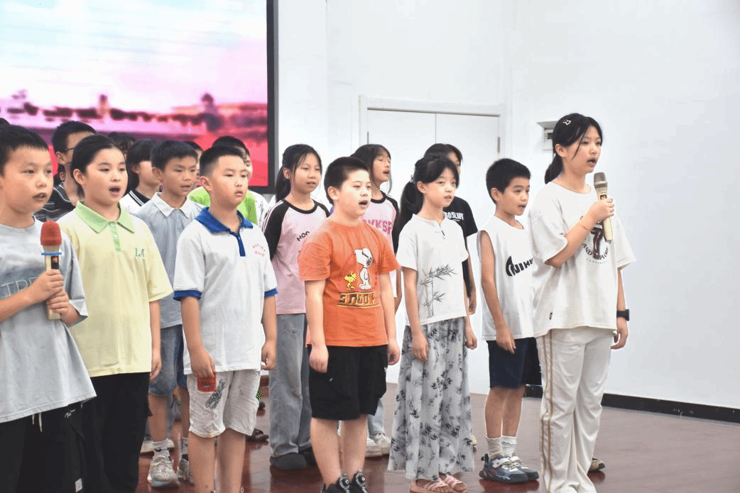 随后,一场充满爱与活力的文艺汇演精彩上演。支教团成员与学生们携手,用歌声和舞姿诠释着支教的温暖与力量。手势舞《送你一朵小红花》中,孩子们稚嫩的小手在老师们的带领下,整齐划一地舞动,每一个动作都充满了对生活的热爱和对未来的憧憬;歌曲《在灿烂阳光下》旋律响起,孩子们的歌声清脆悦耳,如同天籁之音,唱出了他们对美好生活的向往。舞蹈《日不落》、朗诵《挖堰补堰》、舞蹈《暖暖》等节目轮番登场,现场欢声笑语不断。汇演最后,支教团成员合唱《我的纸飞机》,动人的歌声承载着支教团的不舍和对孩子们美好的祝福,将现场气氛推向高潮。