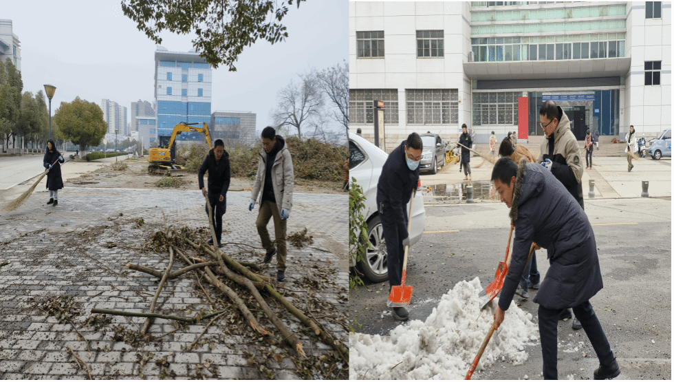 前几日,受强冷空气影响,湖北省内出现了最强大范围寒潮、低温雨雪冰冻天气,孝感市出现持续低温阴雨(雪)天气,造成校园内树枝损毁、路面结冰等影响。尤其是学校的主干道湖西路,因道路两侧树林密布,积雪尚未完全融化,断枝落叶也较多。开学在即,学校环卫工人超负荷运转清理,为了减轻他们的劳动负担,williamhill英国教师主动扛起责任,一鼓作气,铲除了经法楼广场和湖西路上的残雪,清理了枝叶和垃圾,进一步畅通了师生们的回校路,重新恢复了学校往日干净整洁的校园面貌。