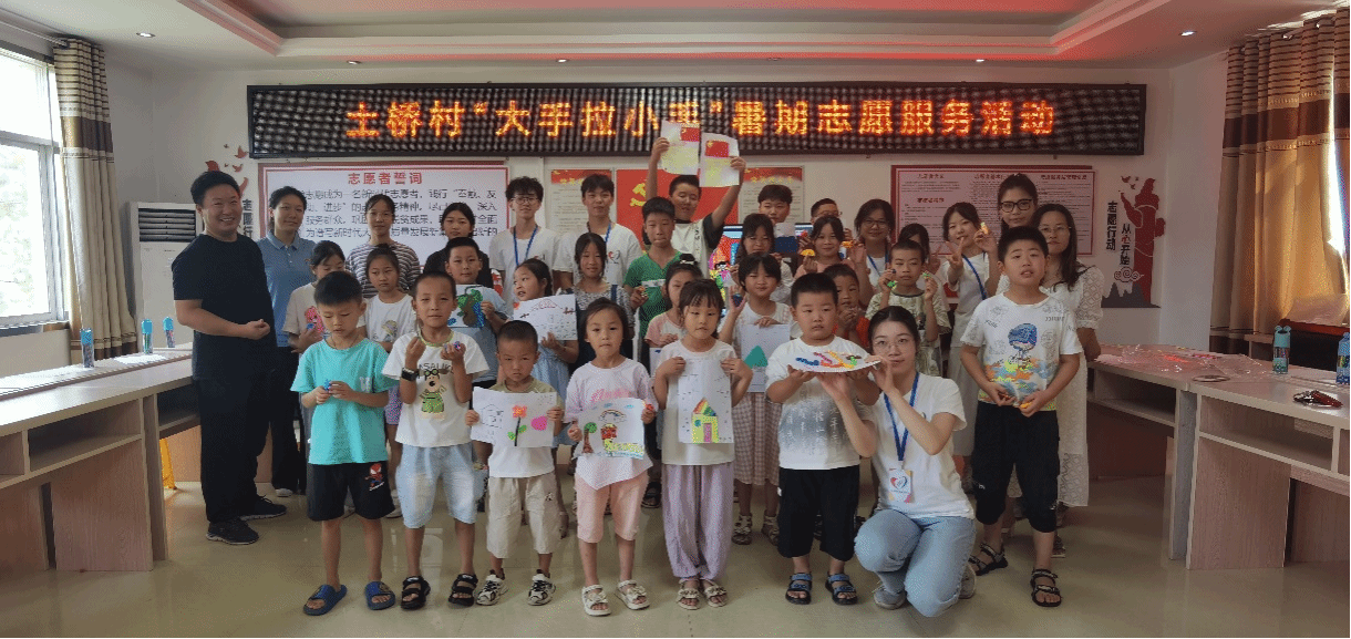 (图为服务队成员在土桥村开展“大手拉小手”暑期志愿服务活动 付麒霖供图)